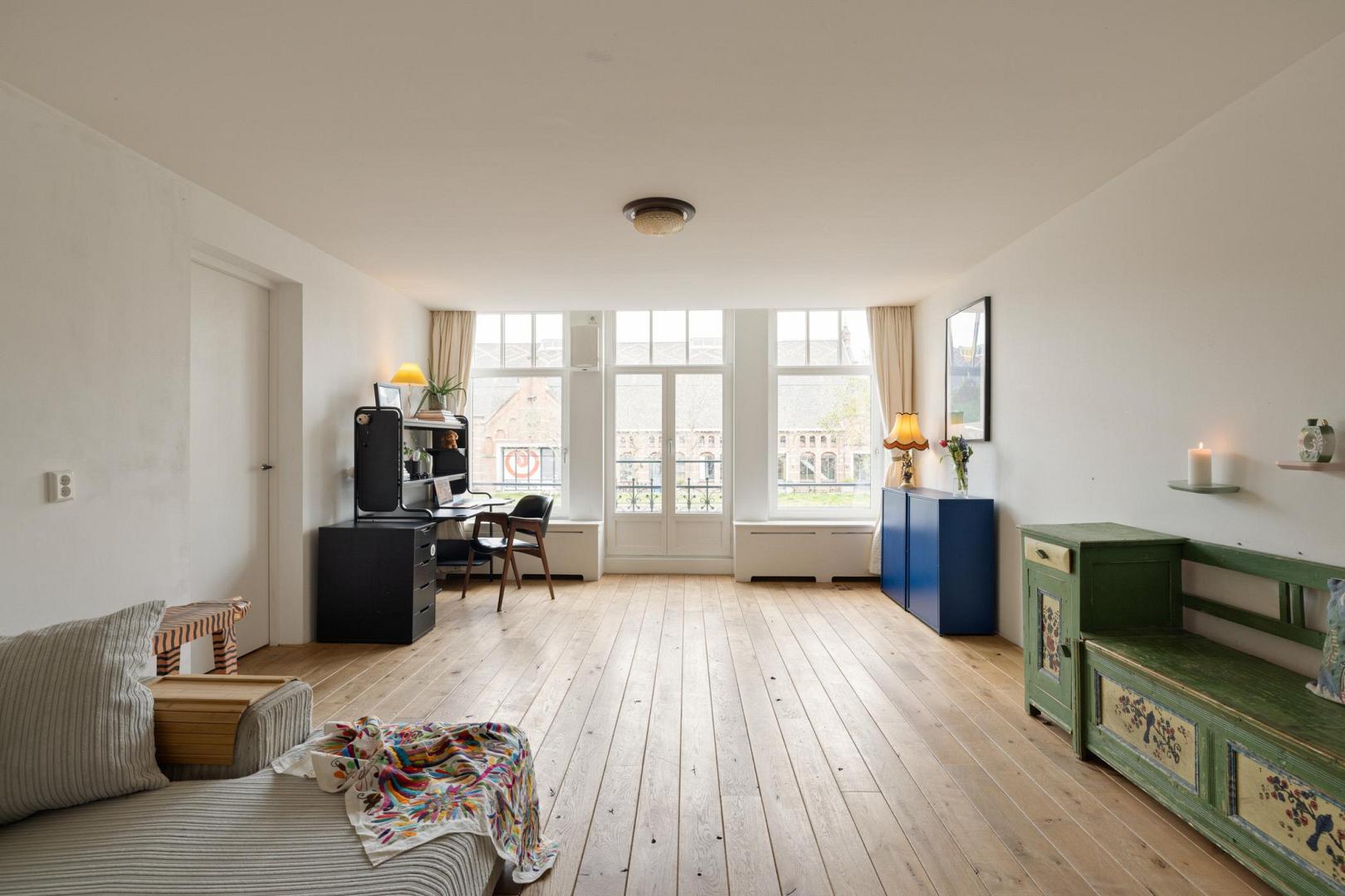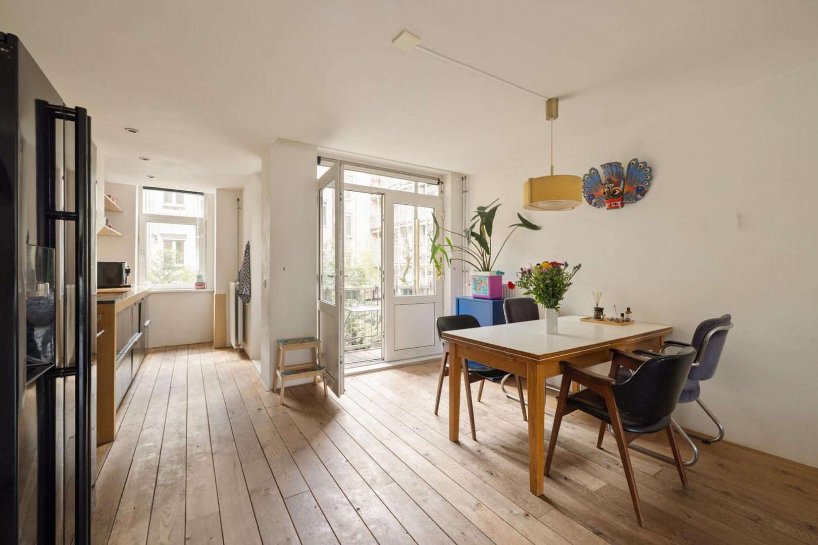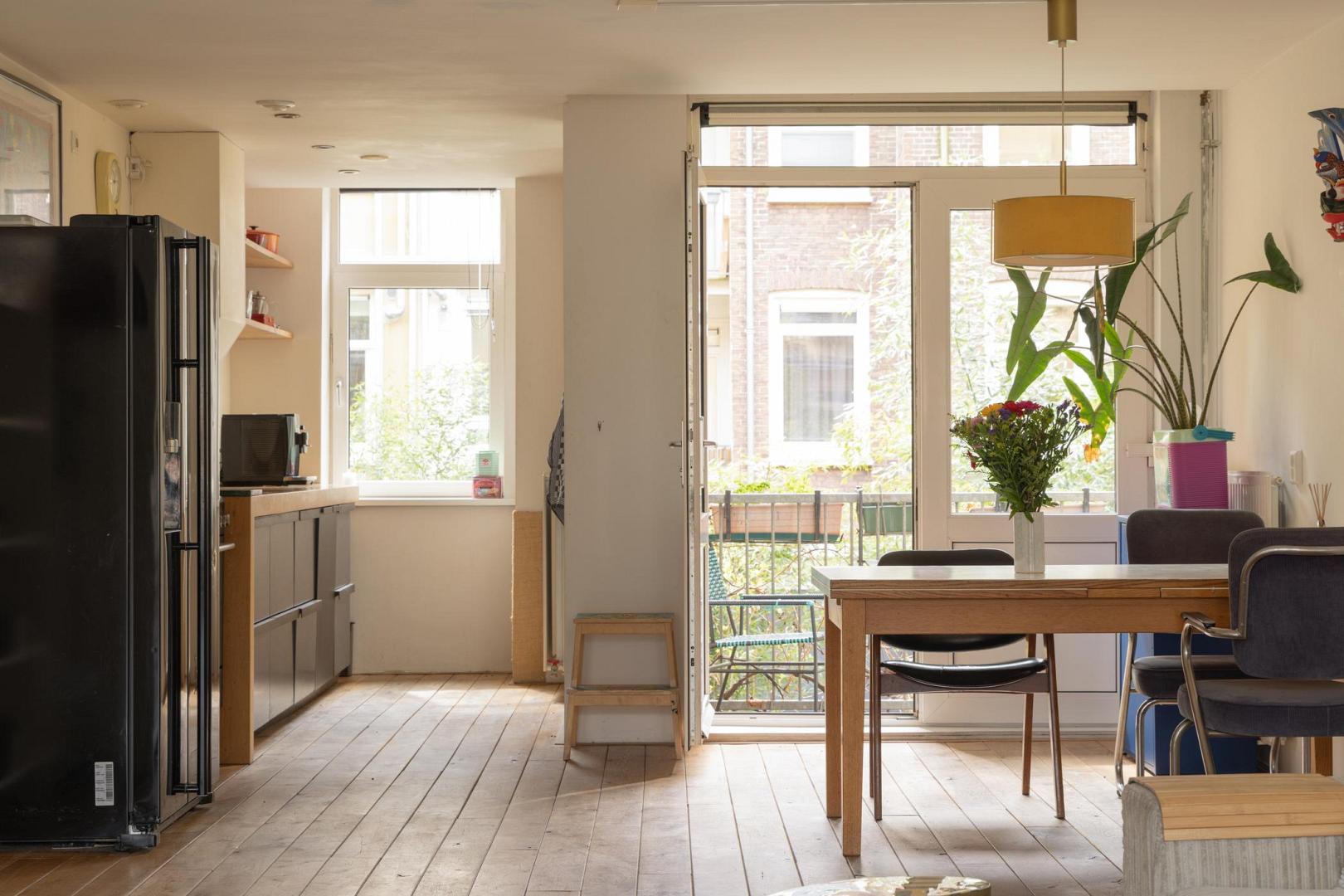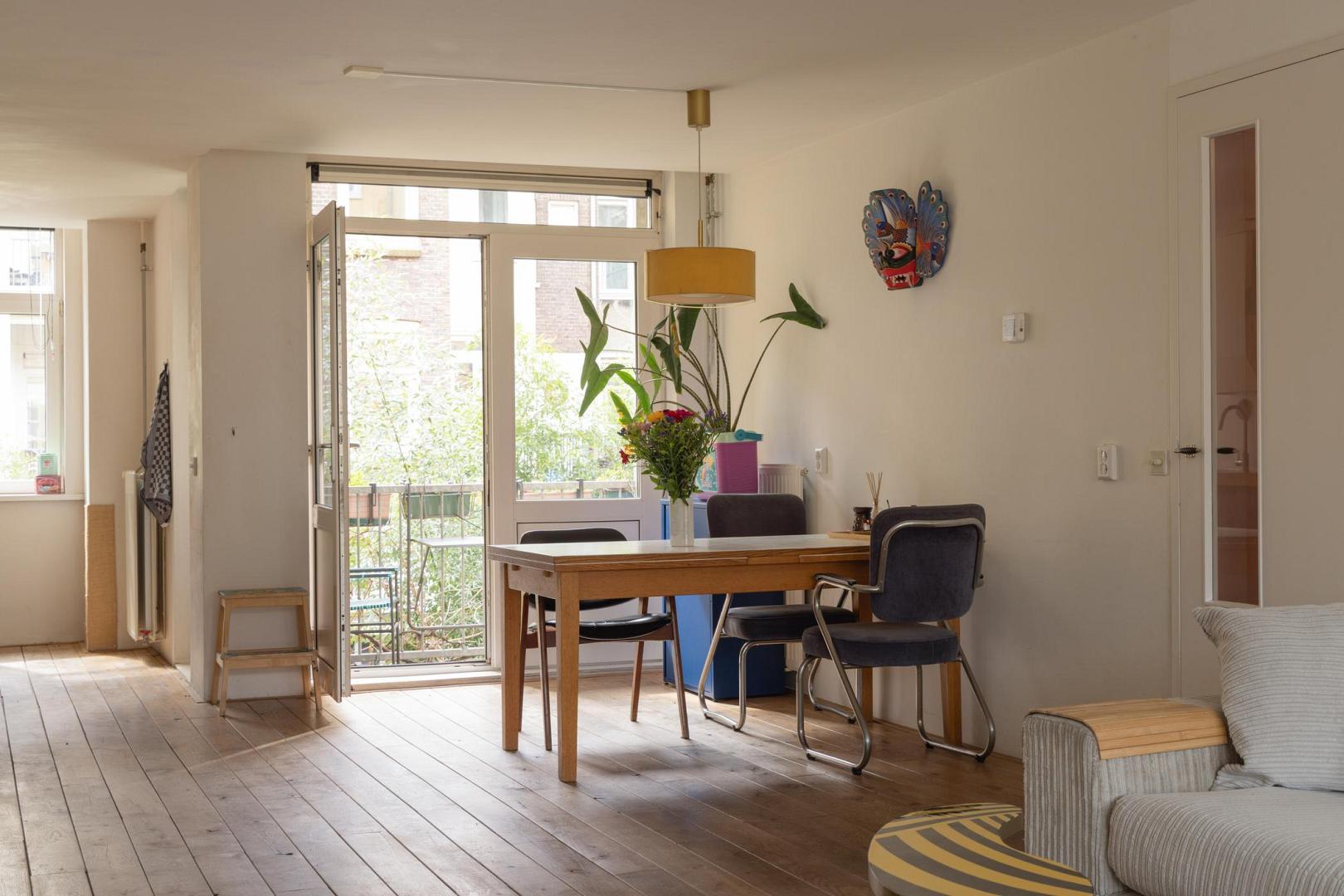 Voor meer informatie verwijzen wij u graag naar onze website. Dit karaktervolle en uitstekend onderhouden appartement van maar liefst 104 m² met een balkon biedt een ideale combinatie van comfort, ruimte en functionaliteit. Gelegen aan de Haarlemmerweg beschikt de woning over een slimme indeling, hoogwaardige afwerking en een verrassend ruime, multifunctionele zolderruimte (geluidsdicht) met een dakkapel van maar liefst 19 m² en een toilet. Alles gelegen op eigen grond. Indeling: Via het gemeenschappelijke trappenhuis bereik je de woning op de eerste verdieping. De hal geeft toegang tot alle vertrekken. De voor Amsterdamse begrippen zeer royale woonkamer is aan de voorzijde gelegen en kenmerkt zich door de sfeervolle eikenhouten vloer, strak gestucte wanden en fraai weggewerkte radiatoren. Dankzij de suskast en het HR++ glas in houten kozijnen is het binnen aangenaam rustig. Aan de voorzijde bevindt zich een Frans balkon. De open keuken is voorzien van een houten werkblad en inbouwapparatuur, waaronder een vaatwasser. De ruimte biedt voldoende plek voor een gezellige eetopstelling. De hoofdslaapkamer beschikt over een Frans balkon met prachtig uitzicht over het water en de oude Westergas. De badkamer is zowel vanuit de slaapkamer als vanaf de overloop te betreden. De badkamer is voorzien van een ruime inloopdouche, wastafel en designradiator. De tweede en derde slaapkamer liggen aan de achterzijde van het appartement. De tweede slaapkamer is in gebruik als kinderkamer en biedt zicht op het balkon. De derde slaapkamer beschikt over een grote ingebouwde kastenwand en toegang tot het balkon, ideaal als werk- of logeerkamer. De woning beschikt tevens over een aparte wasruimte met aansluiting voor een wasmachine en droger. Een absoluut pluspunt is de grote, geïsoleerde zolderkamer van 19 m² met daglicht en een eigen toilet. Deze ruimte biedt volop mogelijkheden, bijvoorbeeld als werkruimte, hobbyruimte of extra opslag. Het betreft externe bergruimte. Aan de achterzijde bevindt zich het balkon, waar je vanaf 12:00 uur kunt genieten van de zon. Hier word je omringd door groen en het geluid van vogels. Bijzonderheden: • Gelegen op eigen grond • 104 m² woonoppervlakte • Royale zolderberging van 19 m2 met toilet en daglicht • Eikenhouten vloer door de gehele woning • HR++-glas en houten kozijnen • Mechanische ventilatie aanwezig • CV-ketel (2021) • Volledig gestucte wanden • Servicekosten € 300,- per maand • In 2007 is het complex gerenoveerd en gesplitst • NEN 2580 ingemeten Locatie: De buurt maakt het plaatje compleet. Dit is een omgeving waar niet alleen jonge gezinnen zich direct thuis voelen, maar waar eigenlijk iedereen prettig kan wonen. Voor gezinnen is het leven hier opvallend comfortabel: er is een ruime keuze aan goede crèches, basisscholen en middelbare scholen in de buurt, en kinderen kunnen veilig opgroeien met volop ruimte om te spelen en ontdekken. Op loopafstand ligt het levendige Westerpark – een stuk natuur midden in de stad waar het hele jaar door iets te beleven is. Kinderen kunnen er vrij spelen, in de zomer lekker spetteren bij het water en picknicken op het gras, terwijl ouders genieten van een barbecue of een ontspannen middag in het groen. Tegelijkertijd is het park ook een culturele hotspot met festivals, markten en evenementen. Ook de Jordaan bereik je gemakkelijk te voet, ideaal voor een spontane koffie, een avondje uit of een wandeling door de karakteristieke straatjes. De directe omgeving zit vol leuke initiatieven van jonge ondernemers: fijne restaurants, gezellige barretjes en koffietentjes die de buurt een eigen, eigentijdse sfeer geven. Wat deze plek extra bijzonder maakt, is de sociale samenstelling. Binnen de VvE is er een mooie balans tussen bewoners met en zonder kinderen, wat zorgt voor een open en inclusieve sfeer. De buurt zelf weerspiegelt dat ook: een levendige mix van Amsterdammers, expats en andere bewoners. Het contact met buren is laagdrempelig en prettig – sociaal als je dat wilt, met tegelijkertijd voldoende ruimte voor jezelf. Ook qua bereikbaarheid zit je hier goed. Het station ligt op ongeveer 10 minuten fietsen en er zijn uitstekende OV-verbindingen die je snel naar andere delen van de stad brengen. Een huis dat niet alleen ruimte biedt, maar ook een manier van leven – levendig en verbonden, met rust, groen en stadse energie in perfecte balans.Video