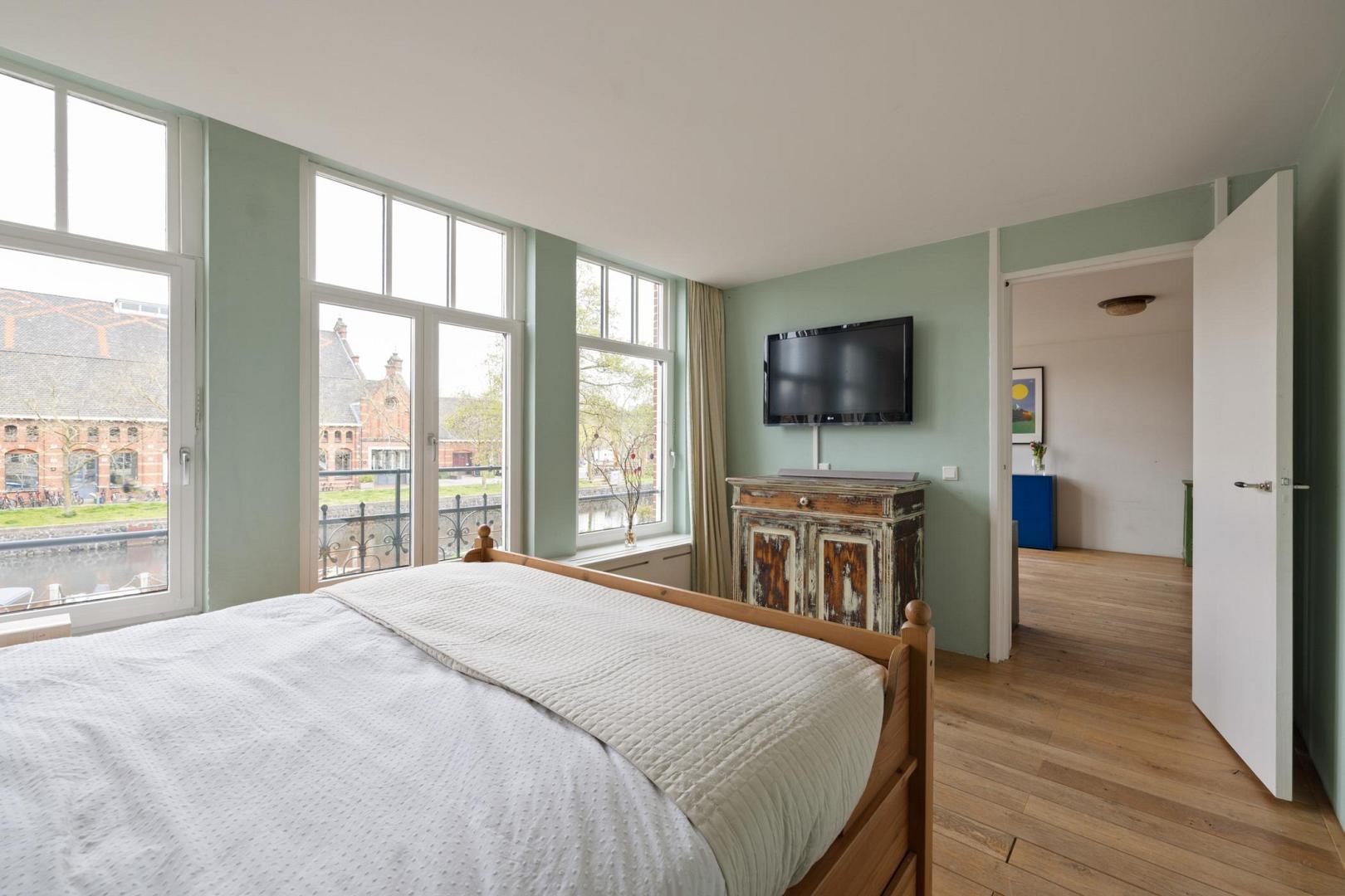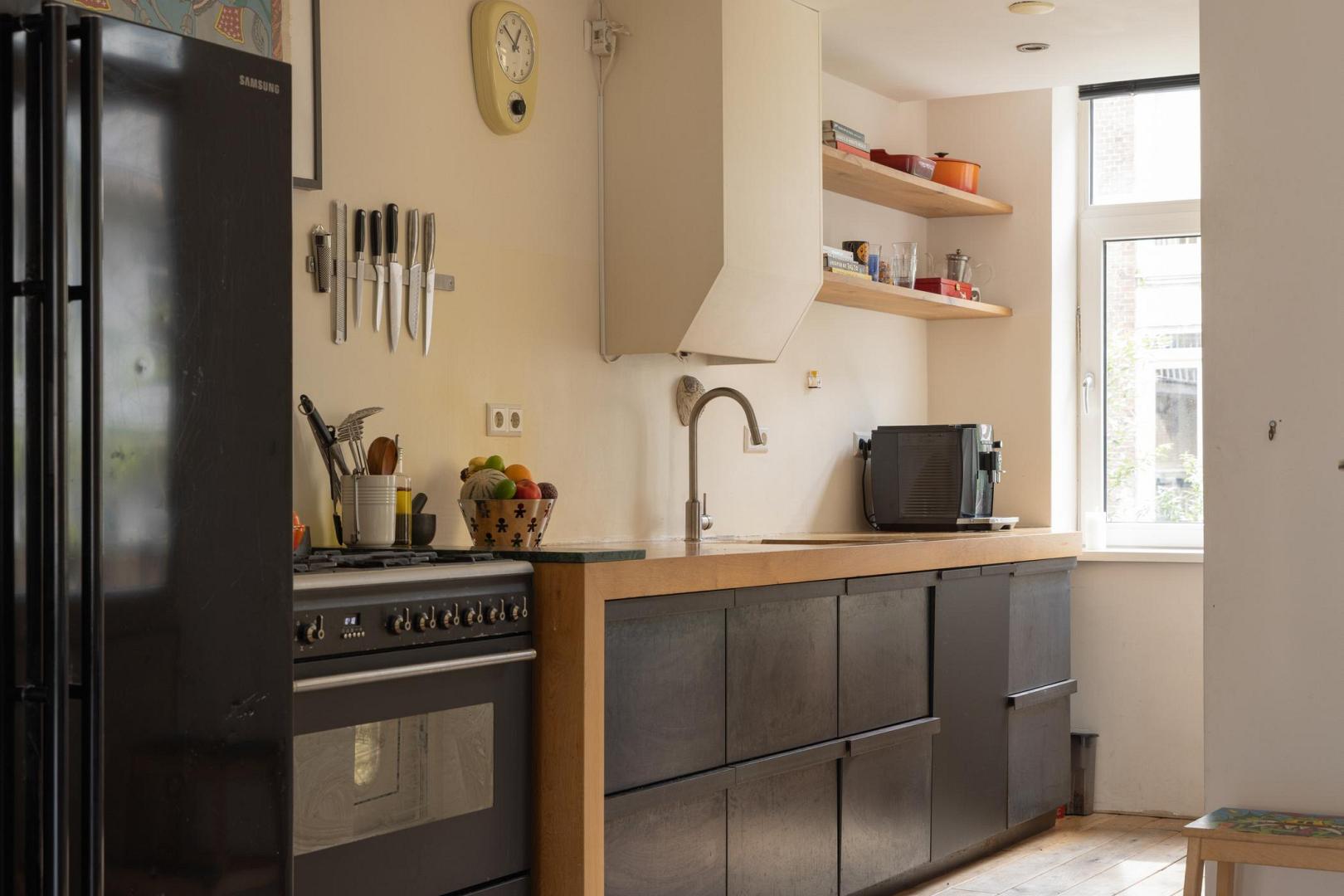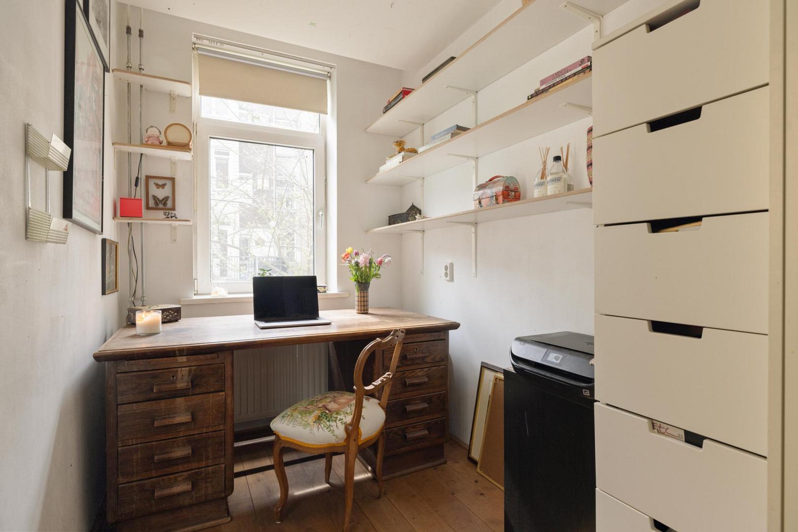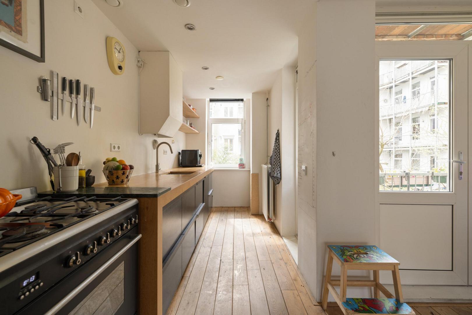 Voor meer informatie verwijzen wij u graag naar onze website. Dit karaktervolle en uitstekend onderhouden appartement van maar liefst 104 m² met een balkon biedt een ideale combinatie van comfort, ruimte en functionaliteit. Gelegen aan de Haarlemmerweg beschikt de woning over een slimme indeling, hoogwaardige afwerking en een verrassend ruime, multifunctionele zolderruimte (geluidsdicht) met een dakkapel van maar liefst 19 m² en een toilet. Alles gelegen op eigen grond. Indeling: Via het gemeenschappelijke trappenhuis bereik je de woning op de eerste verdieping. De hal geeft toegang tot alle vertrekken. De voor Amsterdamse begrippen zeer royale woonkamer is aan de voorzijde gelegen en kenmerkt zich door de sfeervolle eikenhouten vloer, strak gestucte wanden en fraai weggewerkte radiatoren. Dankzij de suskast en het HR++ glas in houten kozijnen is het binnen aangenaam rustig. Aan de voorzijde bevindt zich een Frans balkon. De open keuken is voorzien van een houten werkblad en inbouwapparatuur, waaronder een vaatwasser. De ruimte biedt voldoende plek voor een gezellige eetopstelling. De hoofdslaapkamer beschikt over een Frans balkon met prachtig uitzicht over het water en de oude Westergas. De badkamer is zowel vanuit de slaapkamer als vanaf de overloop te betreden. De badkamer is voorzien van een ruime inloopdouche, wastafel en designradiator. De tweede en derde slaapkamer liggen aan de achterzijde van het appartement. De tweede slaapkamer is in gebruik als kinderkamer en biedt zicht op het balkon. De derde slaapkamer beschikt over een grote ingebouwde kastenwand en toegang tot het balkon, ideaal als werk- of logeerkamer. De woning beschikt tevens over een aparte wasruimte met aansluiting voor een wasmachine en droger. Een absoluut pluspunt is de grote, geïsoleerde zolderkamer van 19 m² met daglicht en een eigen toilet. Deze ruimte biedt volop mogelijkheden, bijvoorbeeld als werkruimte, hobbyruimte of extra opslag. Het betreft externe bergruimte. Aan de achterzijde bevindt zich het balkon, waar je vanaf 12:00 uur kunt genieten van de zon. Hier word je omringd door groen en het geluid van vogels. Bijzonderheden: • Gelegen op eigen grond • 104 m² woonoppervlakte • Royale zolderberging van 19 m2 met toilet en daglicht • Eikenhouten vloer door de gehele woning • HR++-glas en houten kozijnen • Mechanische ventilatie aanwezig • CV-ketel (2021) • Volledig gestucte wanden • Servicekosten € 300,- per maand • In 2007 is het complex gerenoveerd en gesplitst • NEN 2580 ingemeten Locatie: De buurt maakt het plaatje compleet. Dit is een omgeving waar niet alleen jonge gezinnen zich direct thuis voelen, maar waar eigenlijk iedereen prettig kan wonen. Voor gezinnen is het leven hier opvallend comfortabel: er is een ruime keuze aan goede crèches, basisscholen en middelbare scholen in de buurt, en kinderen kunnen veilig opgroeien met volop ruimte om te spelen en ontdekken. Op loopafstand ligt het levendige Westerpark – een stuk natuur midden in de stad waar het hele jaar door iets te beleven is. Kinderen kunnen er vrij spelen, in de zomer lekker spetteren bij het water en picknicken op het gras, terwijl ouders genieten van een barbecue of een ontspannen middag in het groen. Tegelijkertijd is het park ook een culturele hotspot met festivals, markten en evenementen. Ook de Jordaan bereik je gemakkelijk te voet, ideaal voor een spontane koffie, een avondje uit of een wandeling door de karakteristieke straatjes. De directe omgeving zit vol leuke initiatieven van jonge ondernemers: fijne restaurants, gezellige barretjes en koffietentjes die de buurt een eigen, eigentijdse sfeer geven. Wat deze plek extra bijzonder maakt, is de sociale samenstelling. Binnen de VvE is er een mooie balans tussen bewoners met en zonder kinderen, wat zorgt voor een open en inclusieve sfeer. De buurt zelf weerspiegelt dat ook: een levendige mix van Amsterdammers, expats en andere bewoners. Het contact met buren is laagdrempelig en prettig – sociaal als je dat wilt, met tegelijkertijd voldoende ruimte voor jezelf. Ook qua bereikbaarheid zit je hier goed. Het station ligt op ongeveer 10 minuten fietsen en er zijn uitstekende OV-verbindingen die je snel naar andere delen van de stad brengen. Een huis dat niet alleen ruimte biedt, maar ook een manier van leven – levendig en verbonden, met rust, groen en stadse energie in perfecte balans.Video