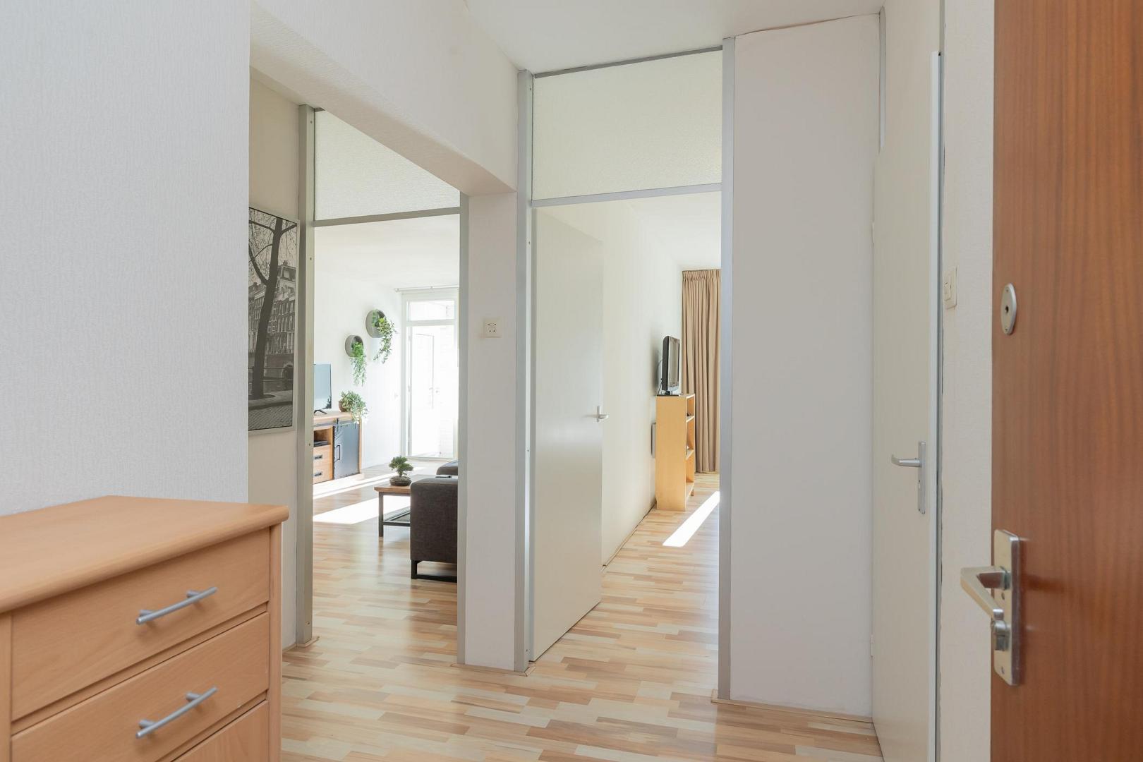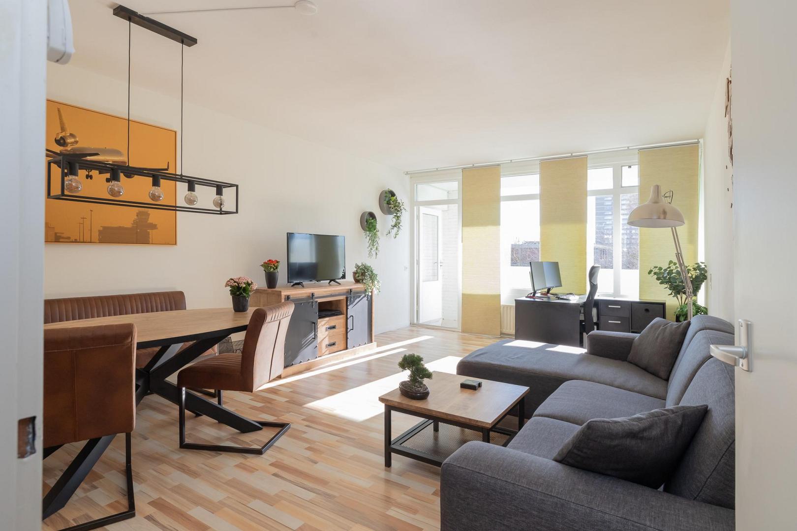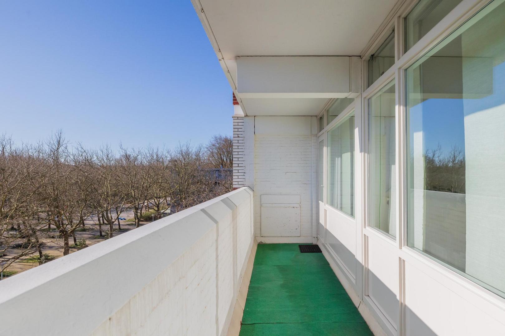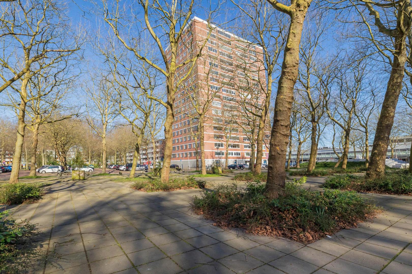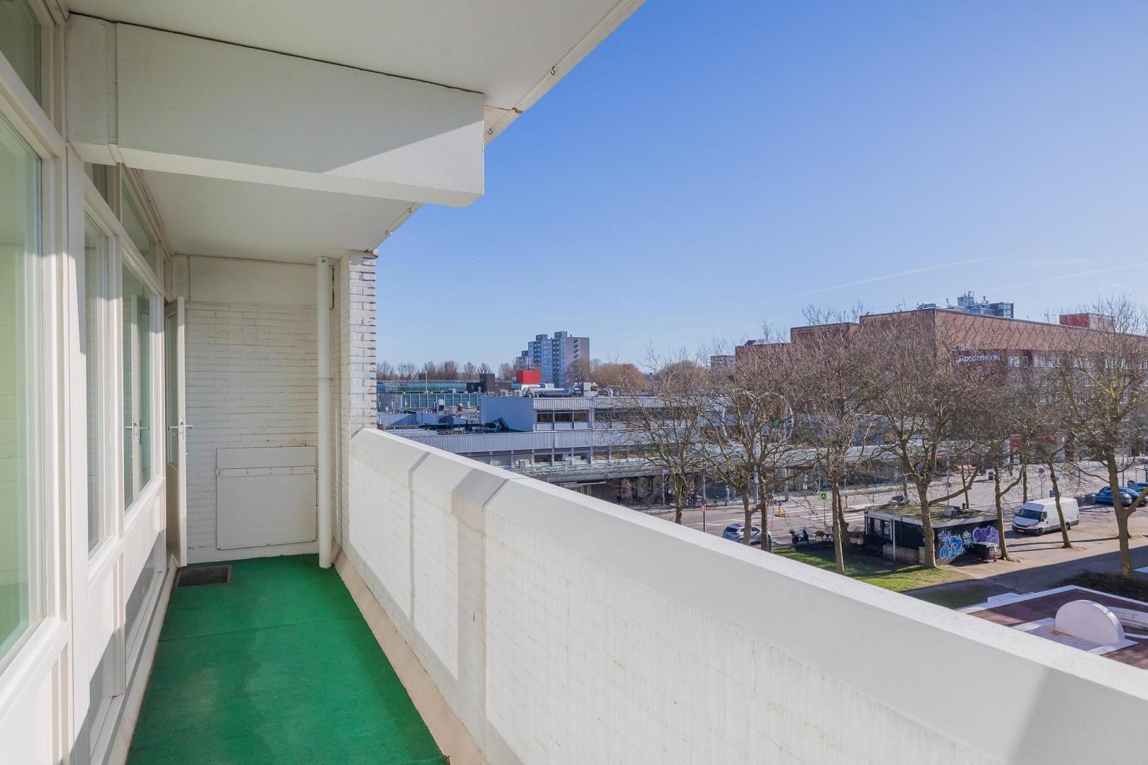 Op de vierde verdieping van een verzorgd appartementencomplex bevindt zich dit ruime en praktisch ingedeelde appartement. De woning is bereikbaar per lift en beschikt over een breed balkon op het oosten. Er zijn in totaal twee bergingen. Bij binnenkomst kom je in de hal, die toegang biedt tot alle vertrekken. De ruime woonkamer is heerlijk licht dankzij de grote raampartijen en vormt een fijne leefruimte. De open keuken sluit hier naadloos op aan en is uitgevoerd in een praktische hoekopstelling, voorzien van diverse inbouwapparatuur zoals een vaatwasser, 4-pits inductiekookplaat, oven en een koel-vriescombinatie. Het appartement beschikt over één goed bemeten slaapkamer met directe toegang tot het balkon. De badkamer is functioneel ingericht en voorzien van een douche met rainshower, wastafelmeubel en aansluiting voor de wasmachine. Prettig is dat het toilet separaat is met een fonteintje. Het balkon vormt een fijne buitenruimte over de gehele breedte van de woning, vanaf de woonkamer en vanaf de slaapkamer is het balkon toegankelijk. De ligging is op het oosten, dus u kunt hier heerlijk in de ochtend van de zon genieten. Extra praktisch zijn de twee bergingen: één op dezelfde verdieping als het appartement en één in de onderbouw, ideaal voor fietsen en opslag. Het complex is netjes onderhouden en beschikt over een huismeester en twee liften. Recent zijn onder andere de balkons en gevels vernieuwd. Erfpacht: De woning is gelegen op erfpachtgrond. De canon is afgekocht tot en met 15 juli 2069. Voor de periode van 16 juli 2019 tot en met 15 juli 2044 bedraagt de canon € 184,- Bijzonderheden • Gelegen op de vierde verdieping • Bereikbaar per lift (2 liften aanwezig) • Ruime en lichte woonkamer • Open keuken met inbouwapparatuur • 1 ruime slaapkamer • Badkamer met rainshower en wasmachineaansluiting • Separaat toilet met fonteintje • Twee bergingen (verdieping + onderbouw) • Kunststof kozijnen • Laminaatvloer • Servicekosten € 309,95 p/m ( incl. voorschot stookkosten en water) • Huismeester aanwezig • Energielabel F Locatie: Het uitzicht is fenomenaal in elk jaargetijde. Je kijkt uit over de westzijde van Amsterdam. Aan de rechterkant ligt het Buikslotermeerplein, onderdeel van het opkomende CAN-gebied van Noord. Op loopafstand vind je onder andere een bioscoop en de halte Buikslotermeerplein, waarmee je in slechts 6 minuten op Amsterdam Centraal staat. De pont richting het centrum of Amsterdam-Oost is eveneens dichtbij. Je woont in het groen, met veel ruimte en mogelijkheden, en tegelijkertijd is het bruisende stadsleven of het landelijke karakter van Noord snel bereikbaar. Goede openbaarvervoervoorzieningen, geen wachttijd voor een parkeervergunning (indien gewenst), en er zijn ook volop deelvervoersmogelijkheden in de buurt. De flat telt 17 verdiepingen en kent een diverse samenstelling van bewoners en woningtypes. De afgesloten entree op de begane grond zorgt voor een veilig gevoelVideo