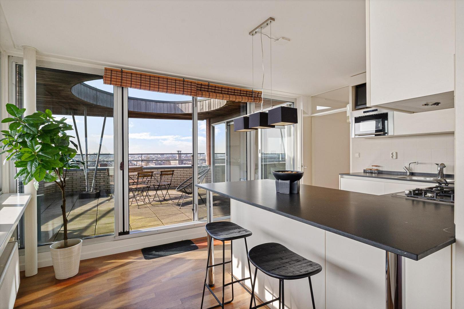 Javastraat 775 – Écht penthouse met riant terras en uitzicht over heel AmsterdamAan het einde van de Javastraat, op de tiende en hoogste verdieping van het gebouw, bevindt zich dit exclusieve penthouse van 138 m² met een fenomenaal uitzicht over heel Amsterdam.