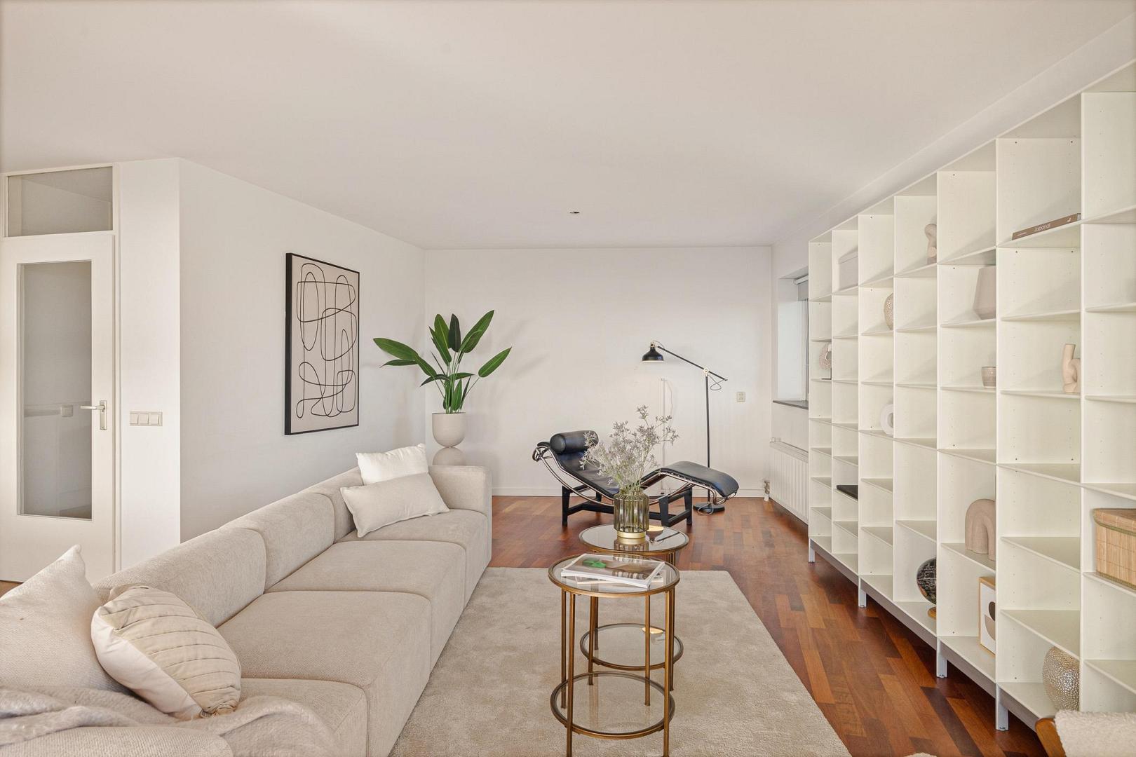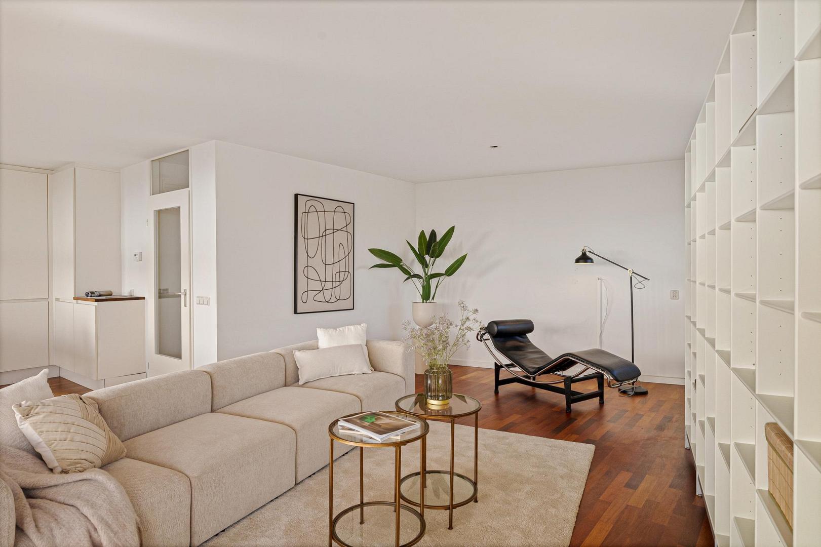 Door het gehele penthouse ligt fraai Bruynzeel parket, wat bijdraagt aan de warme en hoogwaardige uitstraling van het interieur.