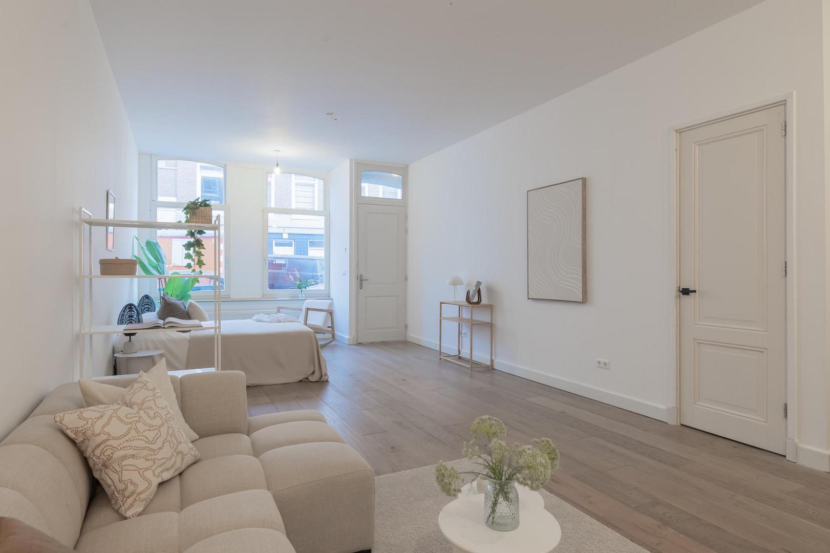 Samen met de hoge plafonds ontstaat een fijne, open leefruimte met de klassieke sfeer die zo kenmerkend is voor dit deel van Amsterdam.