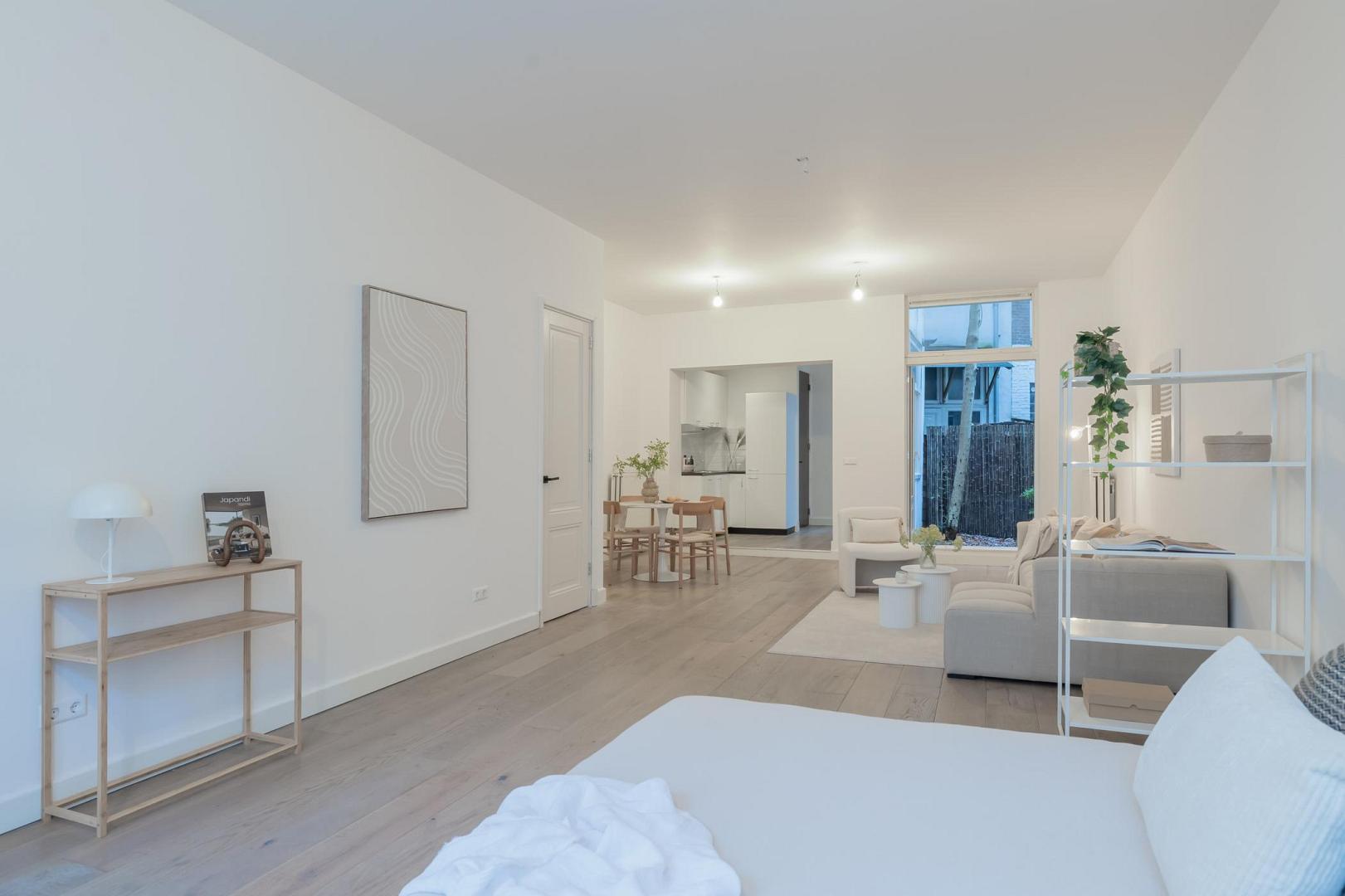 Deze directe verbinding met buiten maakt het wonen hier bijzonder prettig; de tuin vormt een natuurlijk verlengstuk van de leefruimte en biedt een rustige plek midden in de stad.