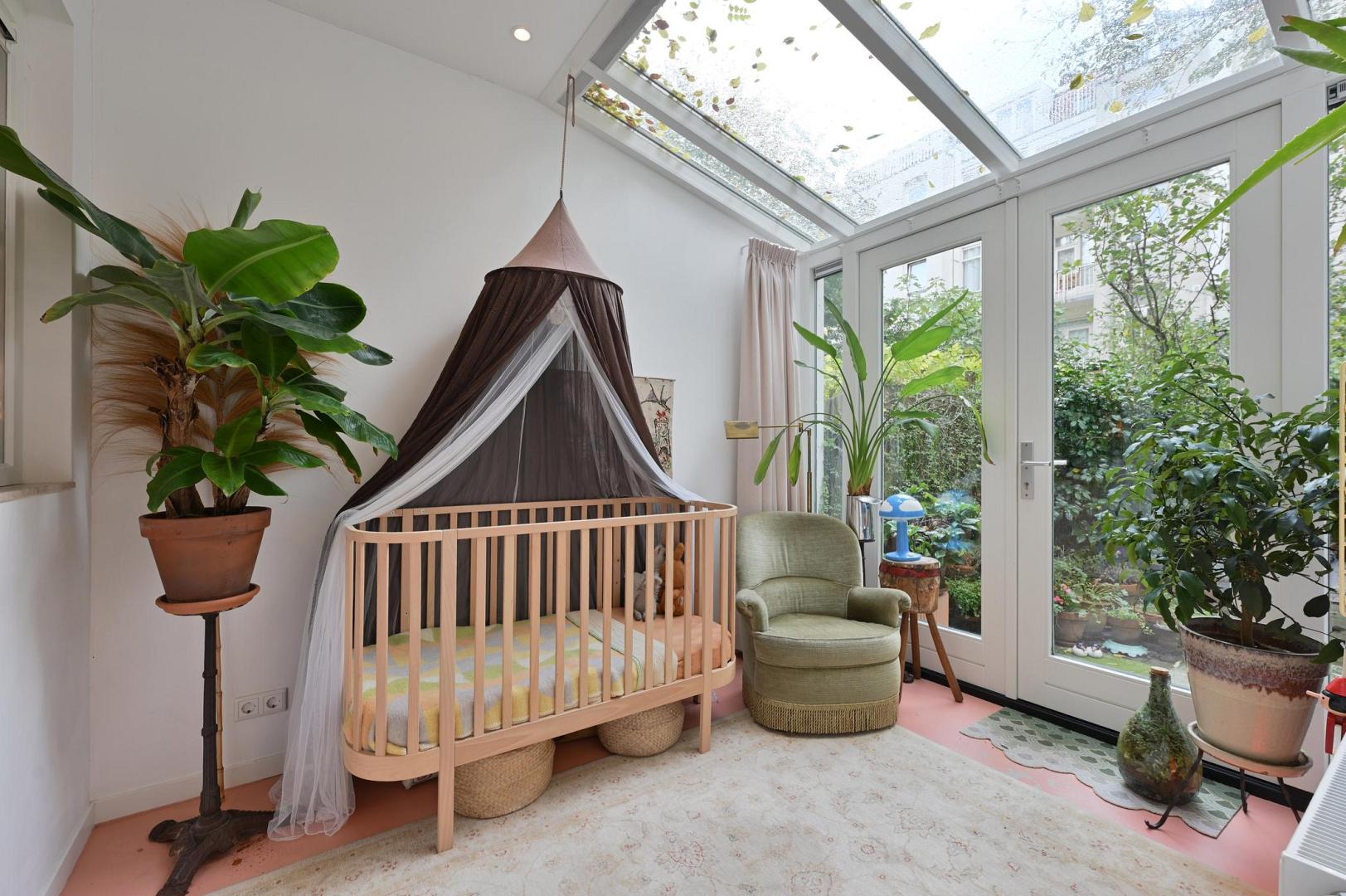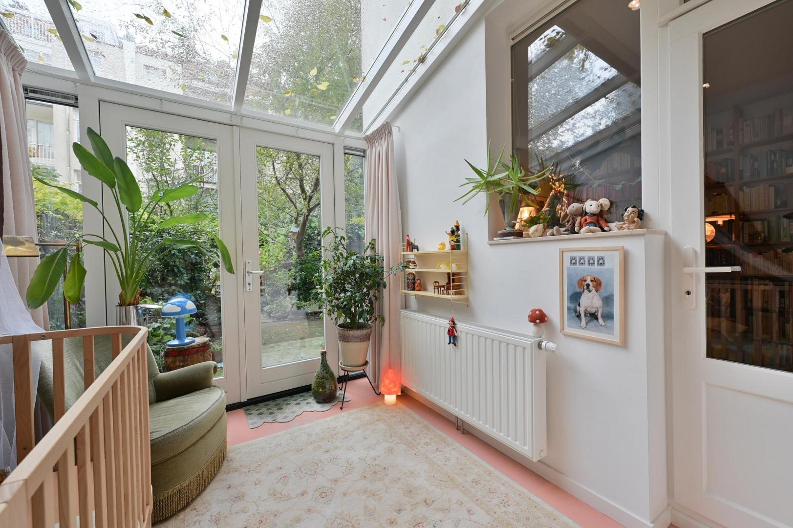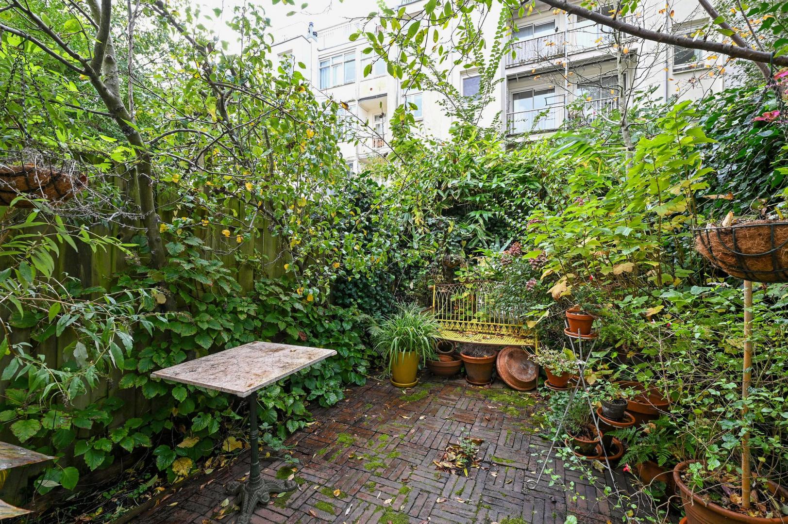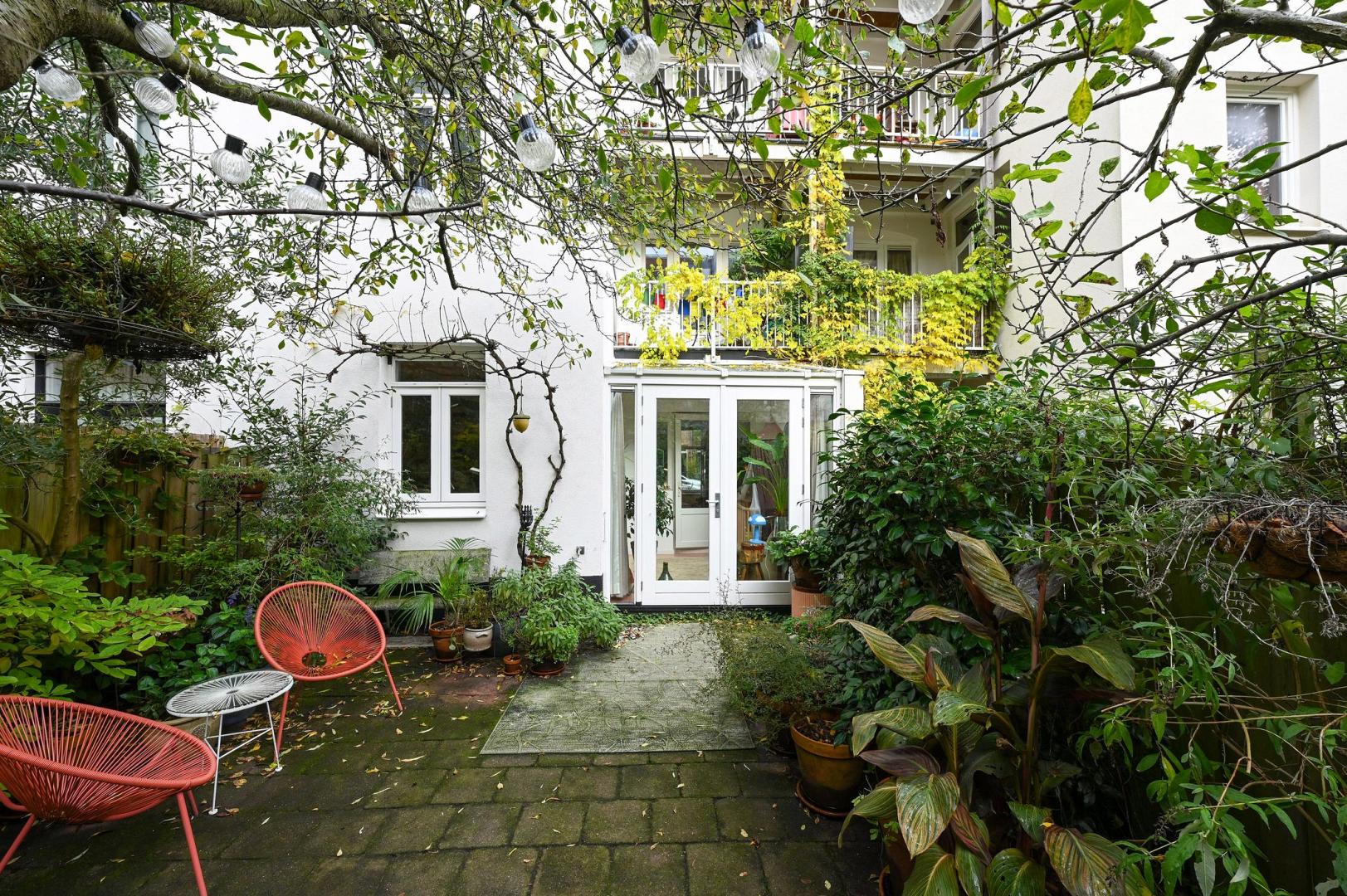 In één van de rustigste en meest karaktervolle straten van de Staatsliedenbuurt bevindt zich deze sfeervolle begane grond woning van maar liefst 54 m², met een zonnige, groene tuin. De woning combineert het comfort van modern wonen met de charme van een rustige buurt in Amsterdam-West en is gelegen op eigen grond. De indeling is als volgt: Via de entree kom je in de hal met ruimte voor een garderobe. De lichte woonkamer vormt het hart van de woning – een fijne plek om te ontspannen, te dineren of thuis te werken. De moderne open Nolte-keuken (mei 2022) sluit hier naadloos op aan. Deze is praktisch ingericht, met bijvoorbeeld een extra hoog werkblad. Daarnaast beschikt de keuken over een composiet werkblad, afzuigkap, kookplaat, vaatwasser, koelkast en mechanische ventilatie. De woning heeft twee comfortabele slaapkamers. De hoofdslaapkamer grenst direct aan de tuin, waardoor je hier geniet van rust en een groen uitzicht. De luxe badkamer is uitgevoerd in neutrale tinten en voorzien van een douche, wastafel en aansluiting voor de wasmachine. In de hal bevindt zich een separaat toilet. De tweede slaapkamer is flexibel in te delen als werkruimte, logeerkamer, kinderkamer of zelfs eetkamer. Dankzij de tuingerichte uitbouw met serre-achtige uitstraling en openslaande deuren naar de tuin is dit een bijzonder lichte ruimte met mooi zicht op het groen. De prachtig aangelegde achtertuin is één van de grootste pluspunten van deze woning. Dit is geen standaard stadstuin, maar een met zorg ontworpen, groene buitenruimte met een bijzondere variëteit aan bomen en beplanting. Zo vind je hier een pruimenboom, appelboom, perenboom, amandelboom, olijfboom en een tulpenboom die in het voorjaar prachtig wit bloeit. In de winter zorgen onder andere de gele jasmijn en roze camelia voor kleur en levendigheid. Langs de gevel bij de slaapkamer groeit een druif, terwijl klimhortensia’s de schuttingen groen aankleden. Ook bevindt zich in de achtertuin een schuur die 5 m² aan berging biedt en is voorzien van elektra. De tuin van circa 50 m² ademt rust en natuurlijke charme, en door de doordachte inrichting is het onderhoud beperkt. Ook de voortuin, met onder andere rozemarijnstruiken, draagt bij aan de verzorgde en uitnodigende uitstraling van de woning. Bijzonderheden: * Eigen grond * Woonoppervlak van 54 m² * NEN-meetrapport aanwezig * Energielabel A * Nieuwe keuken (mei 2022) * Achtertuin met groene oase * Gezonde en actieve VvE * Servicekosten VvE: € 134,- per maand * HR++-glas in houten kozijnen * Marmoleumvloer op gewapende betonnen vloer * Separaat toilet Locatie: De woning ligt in de geliefde Staatsliedenbuurt in Amsterdam-West – een buurt waar stedelijke levendigheid en een sterk buurtgevoel samenkomen. De straat zelf is rustig en heeft een gemoedelijke sfeer, terwijl alle voorzieningen op een steenworp afstand liggen. In de directe omgeving vind je diverse speciaalzaken, koffiezaken, cafés en restaurants. Voor de dagelijkse boodschappen zijn er meerdere supermarkten en buurtwinkels op loopafstand. Met de fiets bereik je binnen enkele minuten de Jordaan, de Haarlemmerdijk of het centrum van Amsterdam. Voor liefhebbers van groen biedt de omgeving eveneens veel mogelijkheden. Het Westerpark en de aangrenzende Westergasfabriek liggen om de hoek en vormen een ideale plek om te wandelen, sporten of ontspannen. Daarnaast worden hier regelmatig culturele evenementen, markten en festivals georganiseerd. Zo geniet je van de stad wanneer je wilt, terwijl je ook gemakkelijk de rust kunt opzoeken – in het park of in je eigen tuin. De bereikbaarheid is uitstekend. Zowel met het openbaar vervoer (tram, bus en nabijgelegen stations) als met de fiets en auto ben je goed verbonden met de rest van de stad en de uitvalswegen. Daarmee is dit een ideale locatie voor wie rustig en comfortabel wil wonen, met het bruisende stadsleven binnen handbereik.Video