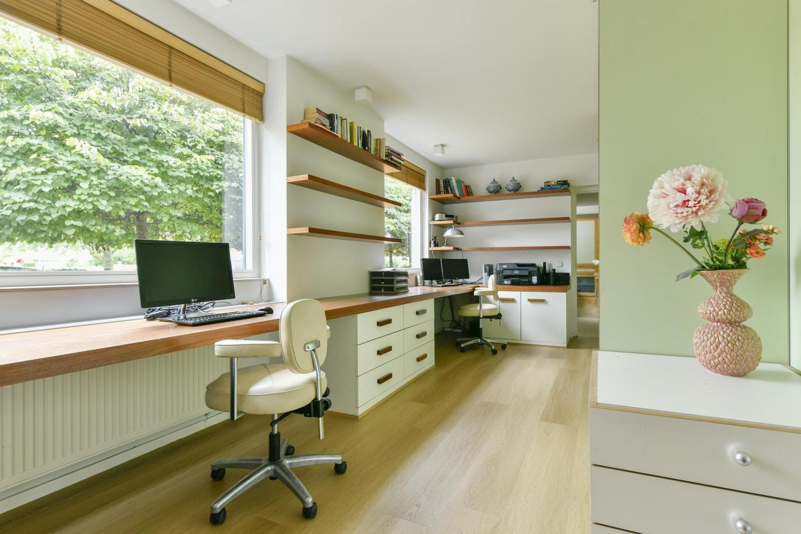 Spacious Detached Family Villa Next to a Park – Ideal for Expats & Relocation Buyers This beautifully maintained detached villa is perfectly suited for international families and relocation buyers seeking space, comfort, and an excellent location close to Amsterdam. The home offers approx. 3,617 sq ft (336 m²) of living space and is situated on a private freehold lot of 6,705 sq ft (623 m²), directly bordering a park. With 5 bedrooms, 2 full bathrooms, and two dedicated home office / practice spaces, this property easily accommodates family life, remote work, and hosting guests. The landscaped southwest-facing garden opens onto the park, creating a peaceful, green setting with a high level of privacy — ideal for children and outdoor living. The villa is located in a highly desirable residential area of Amstelveen, close to international schools, childcare, and daily amenities. Public transportation (tram and bus) is within walking distance, offering fast and easy connections to Amsterdam city center, the Zuidas business district, and Schiphol Airport. Layout Ground Floor: The welcoming entrance hall includes a guest restroom and custom-built storage. The bright and spacious L-shaped living room features a fireplace, a library/TV area, and double French doors leading directly to the garden. The open-plan family kitchen is fully equipped with high-end built-in appliances and includes a pantry/laundry area. French doors open onto a sunny terrace, perfect for outdoor dining. Adjacent to the kitchen is a versatile room suitable as a home office, guest room, or au pair room. Near the main entrance is a second spacious home office, ideal for dual work-from-home setups, along with a large internal storage room. The entire ground floor is finished with a modern PVC floor. First Floor: The landing provides access to all rooms. There are five bedrooms, including two with walk-in closets. The home offers two spacious bathrooms, each fitted with a bathtub, separate shower, vanity, and toilet — ideal for busy family mornings. Why This Home Is Perfect for Expats! - Detached villa on freehold land - Approx. 3,617 sq ft (336 m²) of living space - 5 bedrooms + 2 dedicated home offices - Excellent option for remote work or home-based business - Private on-site parking - Garden surrounding the home, directly adjacent to a park - 19 solar panels for energy efficiency - Energy label B (valid through 2034) - Upper floor equipped with air conditioning - Interior design by renowned interior architect Rob Eckhardt - Garden design by Erik van Gelder (Stijl Tuinen) - Walking distance to tram and bus connections - Close to international schools, shops, green spaces - Easy access to Zuidas, Schiphol Airport, and major highways (A2, A4, A9) - Delivery date negotiableOn the map