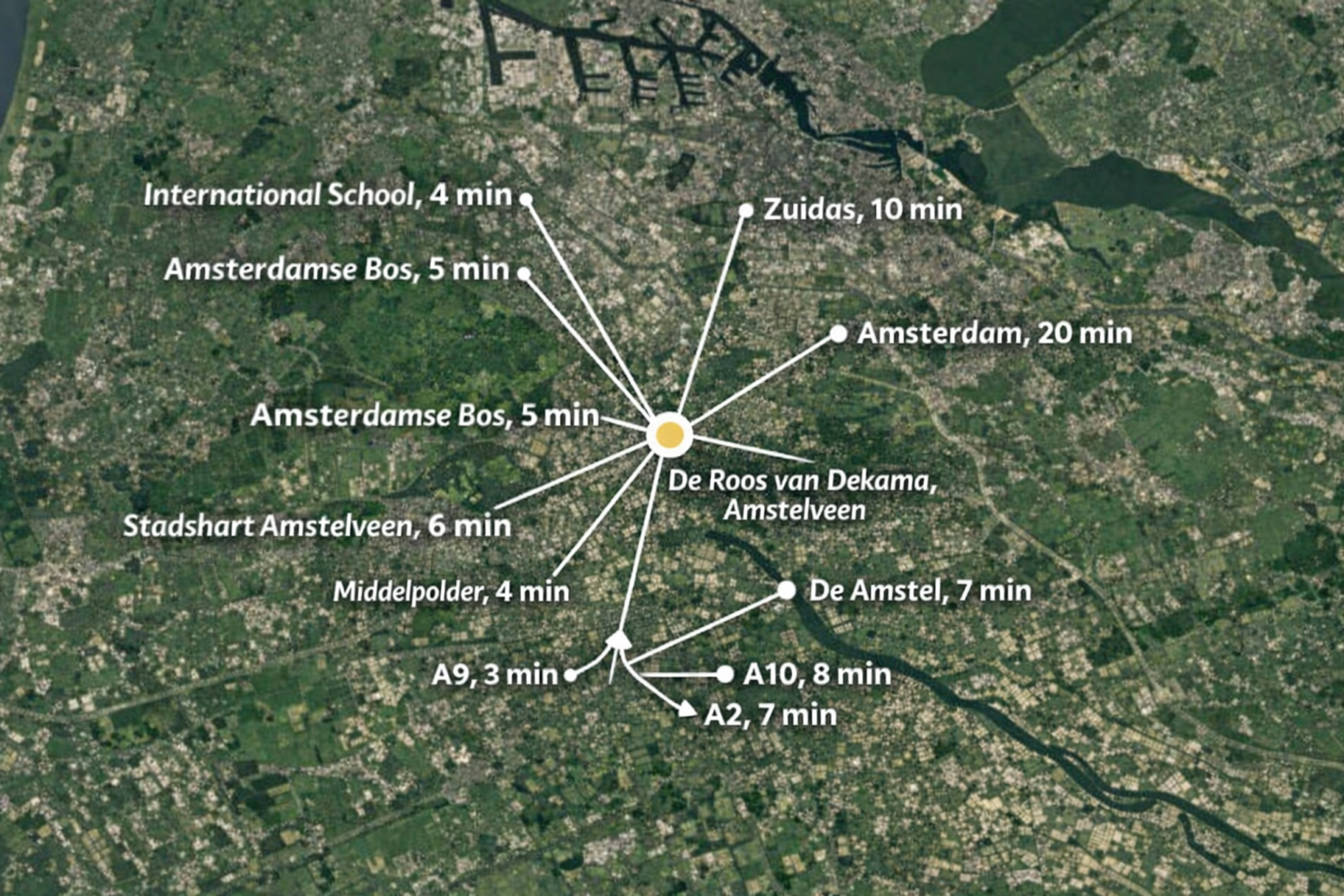 Spacious Detached Family Villa Next to a Park – Ideal for Expats & Relocation Buyers This beautifully maintained detached villa is perfectly suited for international families and relocation buyers seeking space, comfort, and an excellent location close to Amsterdam. The home offers approx. 3,617 sq ft (336 m²) of living space and is situated on a private freehold lot of 6,705 sq ft (623 m²), directly bordering a park. With 5 bedrooms, 2 full bathrooms, and two dedicated home office / practice spaces, this property easily accommodates family life, remote work, and hosting guests. The landscaped southwest-facing garden opens onto the park, creating a peaceful, green setting with a high level of privacy — ideal for children and outdoor living. The villa is located in a highly desirable residential area of Amstelveen, close to international schools, childcare, and daily amenities. Public transportation (tram and bus) is within walking distance, offering fast and easy connections to Amsterdam city center, the Zuidas business district, and Schiphol Airport. Layout Ground Floor: The welcoming entrance hall includes a guest restroom and custom-built storage. The bright and spacious L-shaped living room features a fireplace, a library/TV area, and double French doors leading directly to the garden. The open-plan family kitchen is fully equipped with high-end built-in appliances and includes a pantry/laundry area. French doors open onto a sunny terrace, perfect for outdoor dining. Adjacent to the kitchen is a versatile room suitable as a home office, guest room, or au pair room. Near the main entrance is a second spacious home office, ideal for dual work-from-home setups, along with a large internal storage room. The entire ground floor is finished with a modern PVC floor. First Floor: The landing provides access to all rooms. There are five bedrooms, including two with walk-in closets. The home offers two spacious bathrooms, each fitted with a bathtub, separate shower, vanity, and toilet — ideal for busy family mornings. Why This Home Is Perfect for Expats! - Detached villa on freehold land - Approx. 3,617 sq ft (336 m²) of living space - Safe area - 5 bedrooms + 2 dedicated home offices - Excellent option for remote work or home-based business - Option for bedroom with bathroom on the ground floor (see option drawing) - Private on-site parking - Garden surrounding the home, directly adjacent to a park - 19 solar panels for energy efficiency - Energy label B (valid through 2034) - Upper floor equipped with air conditioning - Interior design by renowned interior architect Rob Eckhardt - Garden design by Erik van Gelder (Stijl Tuinen) - Walking distance to tram and bus connections - Close to international schools, shops, green spaces - Easy access to Zuidas, Schiphol Airport, and major highways (A2, A4, A9) - Delivery date negotiableOn the map