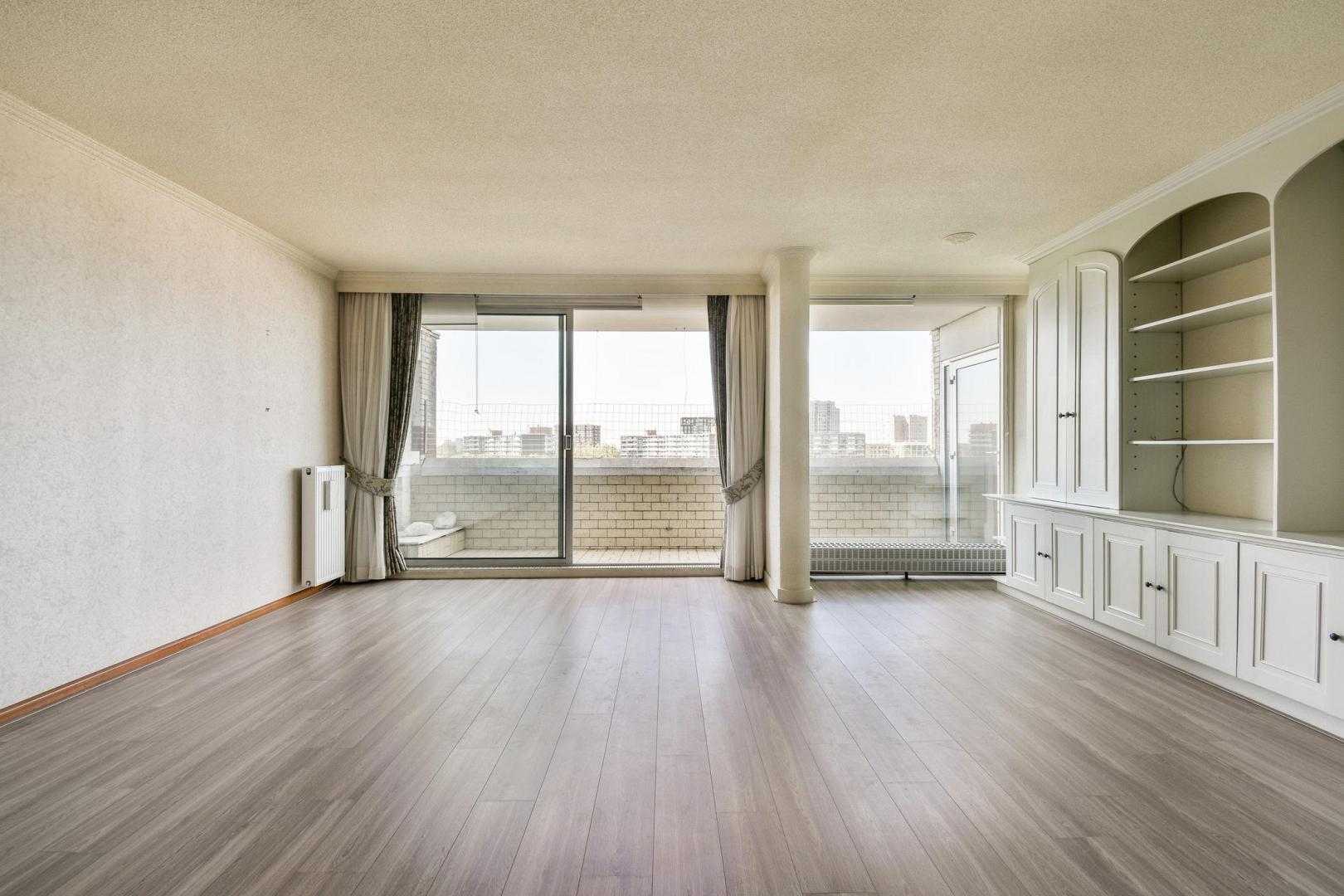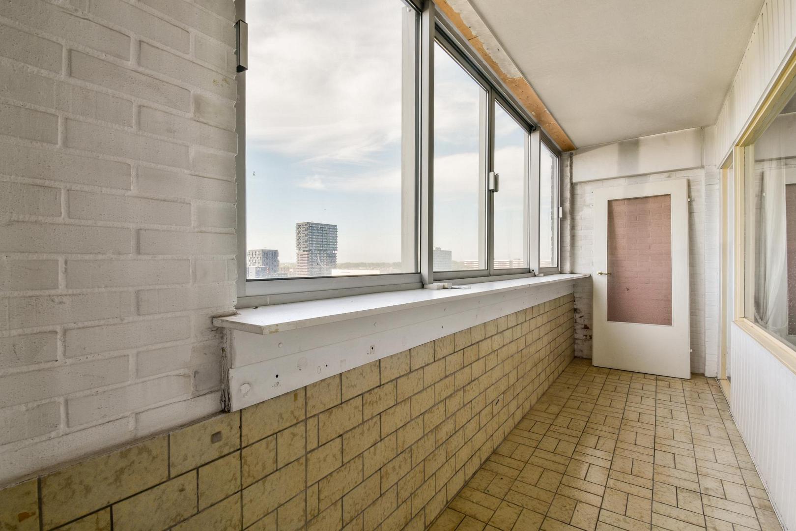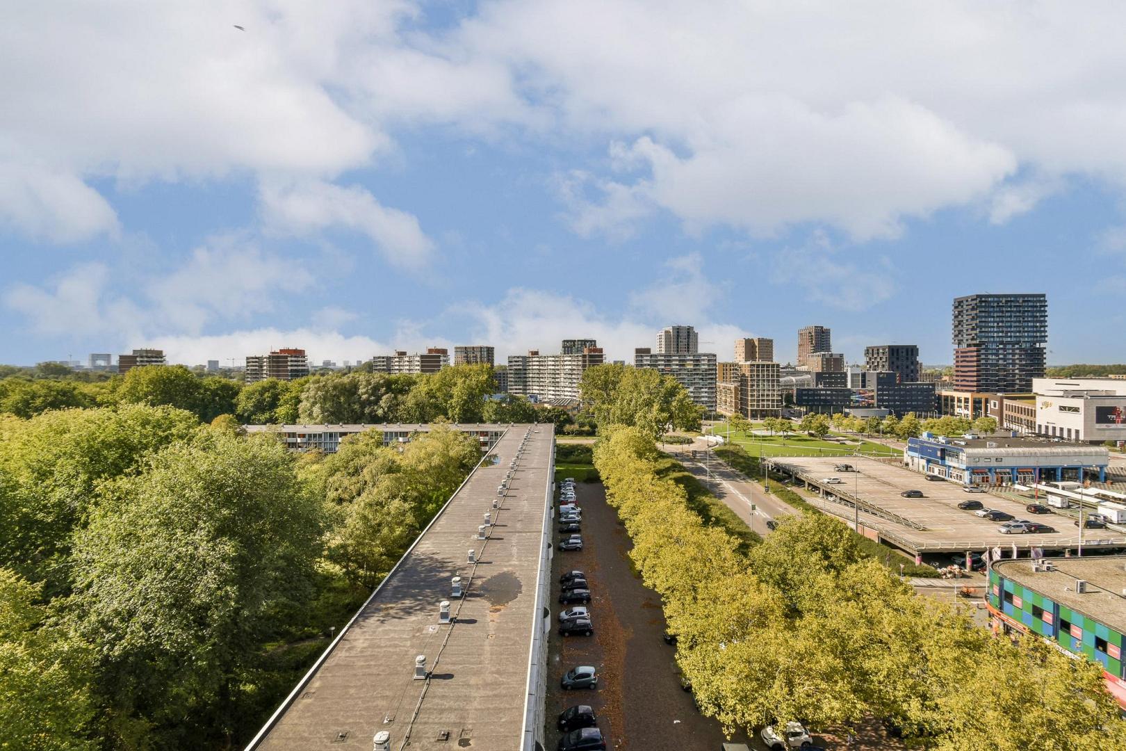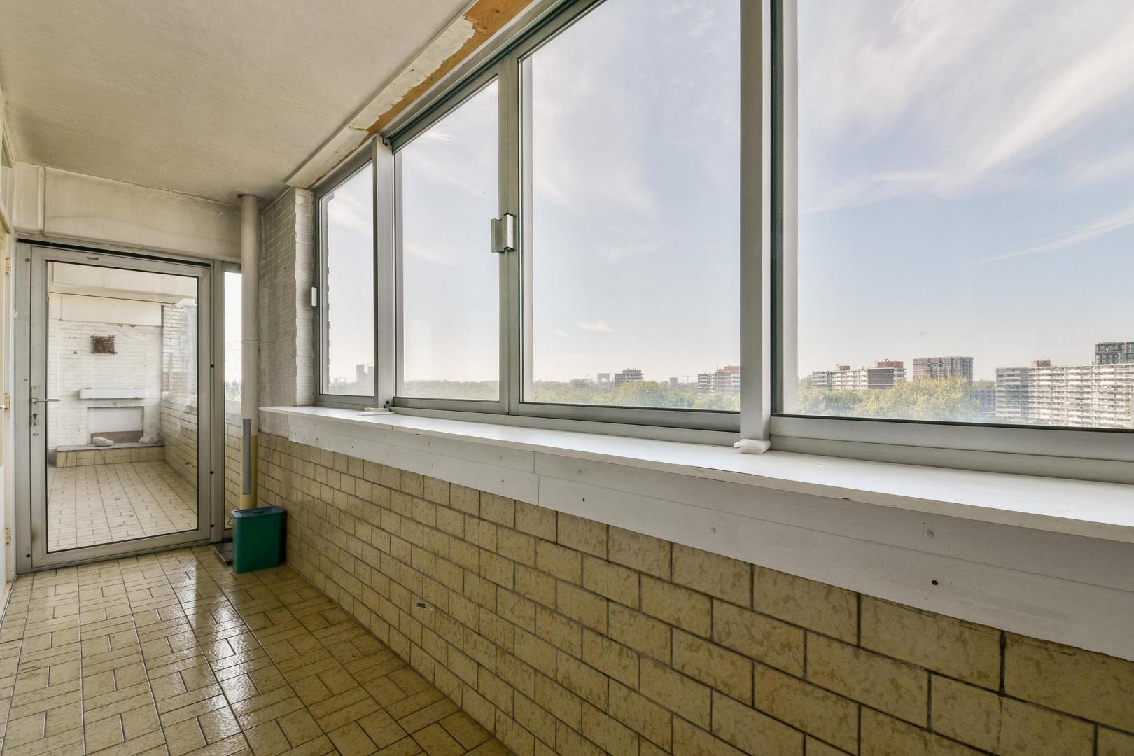 Beautifully situated on the 11th floor, with panoramic views and a spacious loggia (balcony) facing west. This bright 3-room apartment can easily be converted into a 4-room home. Located in a green and lively neighbourhood of Amsterdam-Noord, with all amenities within easy reach, this is a wonderful place to come home to. Layout: Ground floor You enter the building through the central hall with doorbells and postboxes. The well-maintained entrance has two lifts that take you to the 11th floor. 11th floor Upon entering the apartment, there is a spacious hall with wardrobe space. Here you will also find the separate toilet and the intercom system that allows you to open the front door remotely. The spacious living room is wonderfully light thanks to the large windows and features laminate flooring, a large built-in cupboard and sliding doors to the balcony. The semi-open corner kitchen has a hob, oven, fridge-freezer, wall and base units and an extractor hood. The floor is finished with tiles. The spacious landing provides access to two bedrooms and the renovated, modern bathroom. The first bedroom has access to the second, covered part of the balcony. The floor in this room has not yet been finished. The second bedroom, with carpeted flooring, also provides access to the balcony. This room has a built-in mirrored wardrobe and a sliding window to the balcony, creating a conservatory effect. From the landing, you enter the renovated bathroom with washing machine connection, washbasin with mirror cabinet and a large walk-in shower. The bathroom is tiled to the ceiling. The balcony is open on the living room side, while windows have been installed on the bedroom side, making this area perfect for use as a conservatory. Most of the windows can be slid open. The balcony offers extra living space and, of course, a beautiful view. Features: * Year of construction: 1972 * Gallery flat with west-facing balcony * Living area: 91 m² * Current ground rent: €203 per year, fixed until 15 June 2044. After that, indexation for 25 years (AB 2000) * Double glazing * Block heating * Parking via permit system * Two spacious bedrooms * Healthy and active owners' association * Monthly service charges: €259,20 * Advance heating costs €166,96 Location: The view is phenomenal – in every season. You look out over the west side of Amsterdam. On the right is Buikslotermeerplein, part of the up-and-coming CAN area of Noord. Within walking distance you will find a cinema and the Buikslotermeerplein stop, which takes you to Amsterdam Central Station in just 6 minutes. The ferry to the city centre or Amsterdam-Oost is also nearby. You will be living in a green area with plenty of space and opportunities, while at the same time being within easy reach of the bustling city life or the rural character of Noord. Good public transport facilities, no waiting time for a parking permit (if desired), and plenty of shared transport options in the neighbourhood. The flat has 17 floors and a diverse mix of residents and housing types. The enclosed entrance on the ground floor provides a feeling of security.Video