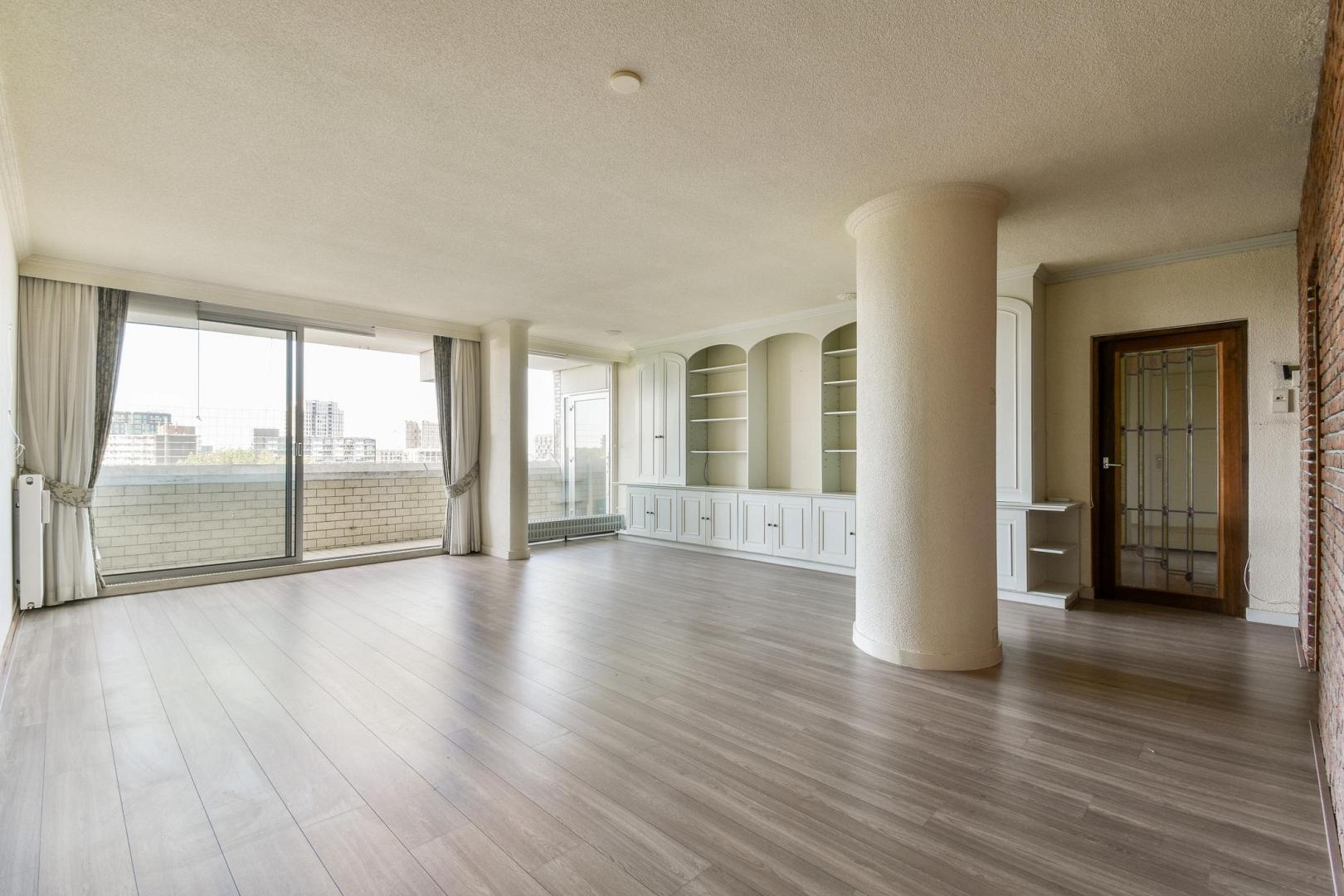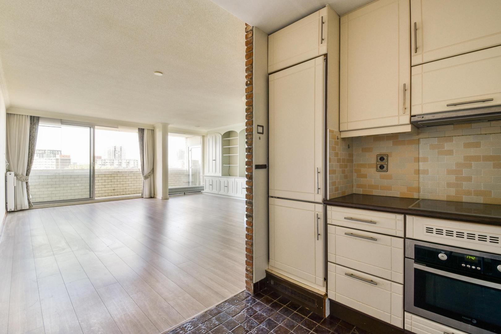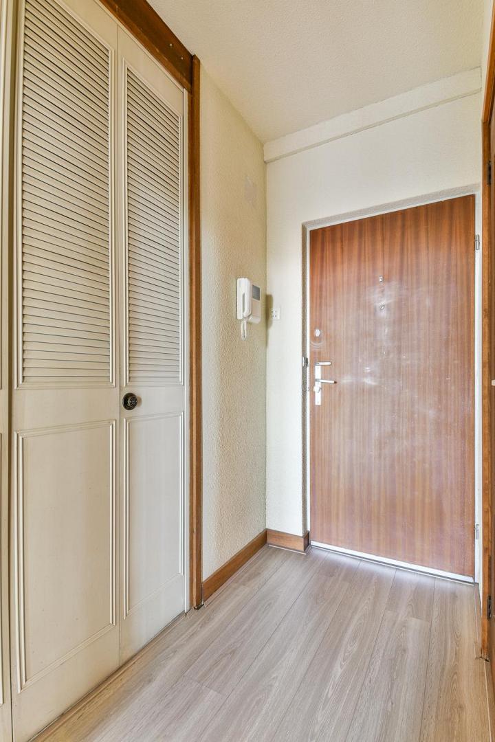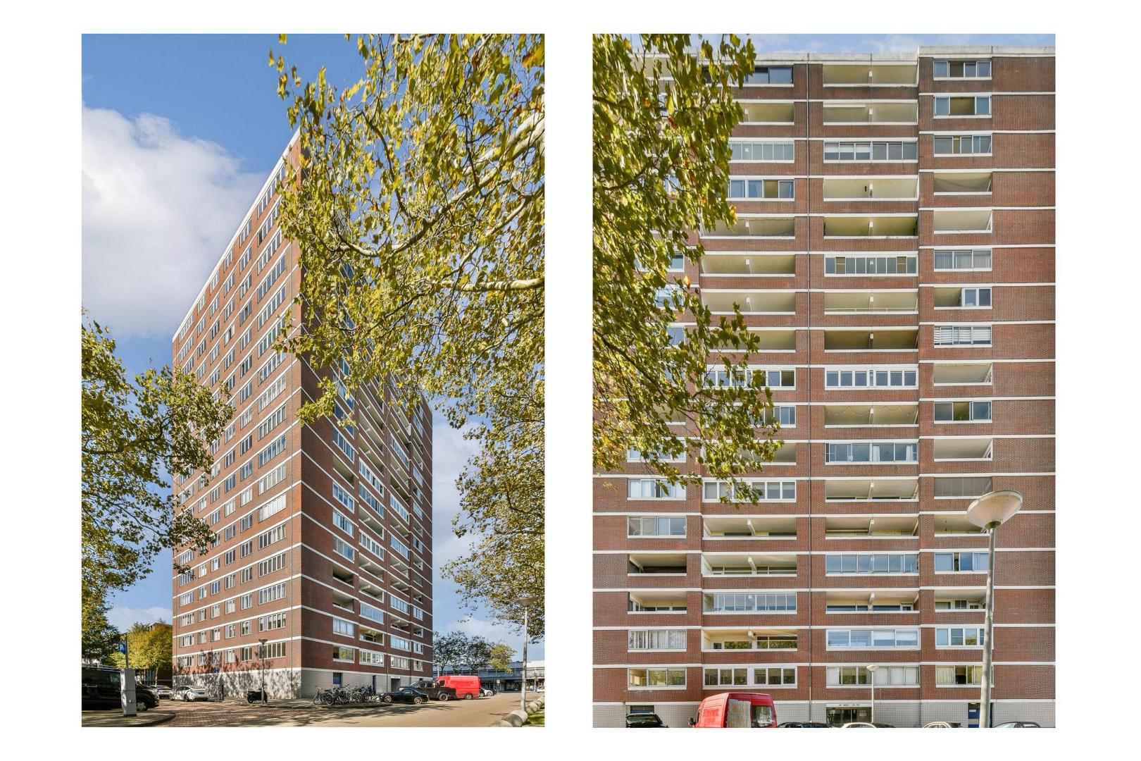Beautifully situated on the 11th floor, with panoramic views and a spacious loggia (balcony) facing west. This bright 3-room apartment can easily be converted into a 4-room home. Located in a green and lively neighbourhood of Amsterdam-Noord, with all amenities within easy reach, this is a wonderful place to come home to. Layout: Ground floor You enter the building through the central hall with doorbells and postboxes. The well-maintained entrance has two lifts that take you to the 11th floor. 11th floor Upon entering the apartment, there is a spacious hall with wardrobe space. Here you will also find the separate toilet and the intercom system that allows you to open the front door remotely. The spacious living room is wonderfully light thanks to the large windows and features laminate flooring, a large built-in cupboard and sliding doors to the balcony. The semi-open corner kitchen has a hob, oven, fridge-freezer, wall and base units and an extractor hood. The floor is finished with tiles. The spacious landing provides access to two bedrooms and the renovated, modern bathroom. The first bedroom has access to the second, covered part of the balcony. The floor in this room has not yet been finished. The second bedroom, with carpeted flooring, also provides access to the balcony. This room has a built-in mirrored wardrobe and a sliding window to the balcony, creating a conservatory effect. From the landing, you enter the renovated bathroom with washing machine connection, washbasin with mirror cabinet and a large walk-in shower. The bathroom is tiled to the ceiling. The balcony is open on the living room side, while windows have been installed on the bedroom side, making this area perfect for use as a conservatory. Most of the windows can be slid open. The balcony offers extra living space and, of course, a beautiful view. Features: * Year of construction: 1972 * Gallery flat with west-facing balcony * Living area: 91 m² * Current ground rent: €203 per year, fixed until 15 June 2044. After that, indexation for 25 years (AB 2000) * Double glazing * Block heating * Parking via permit system * Two spacious bedrooms * Healthy and active owners' association * Monthly service charges: €259,20 * Advance heating costs €166,96 Location: The view is phenomenal – in every season. You look out over the west side of Amsterdam. On the right is Buikslotermeerplein, part of the up-and-coming CAN area of Noord. Within walking distance you will find a cinema and the Buikslotermeerplein stop, which takes you to Amsterdam Central Station in just 6 minutes. The ferry to the city centre or Amsterdam-Oost is also nearby. You will be living in a green area with plenty of space and opportunities, while at the same time being within easy reach of the bustling city life or the rural character of Noord. Good public transport facilities, no waiting time for a parking permit (if desired), and plenty of shared transport options in the neighbourhood. The flat has 17 floors and a diverse mix of residents and housing types. The enclosed entrance on the ground floor provides a feeling of security.Video