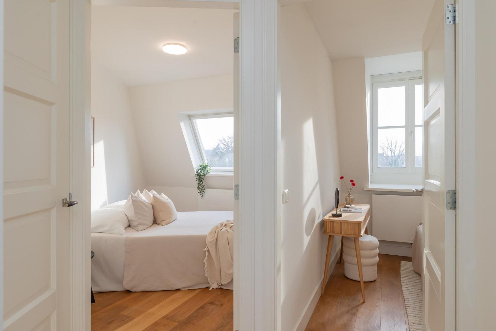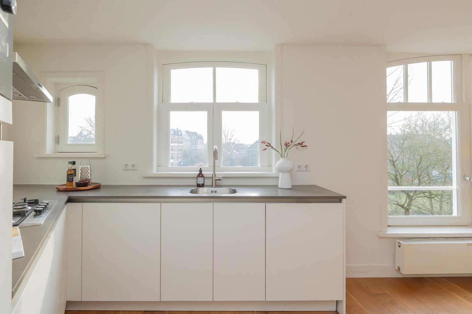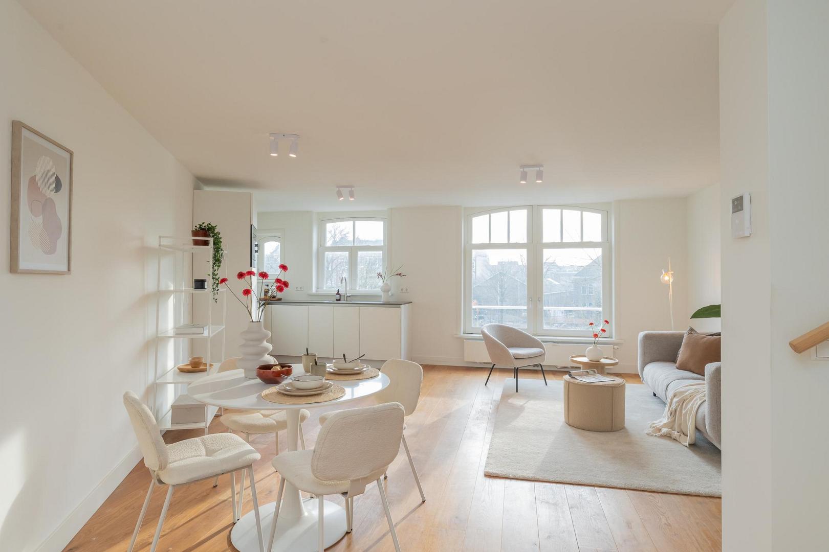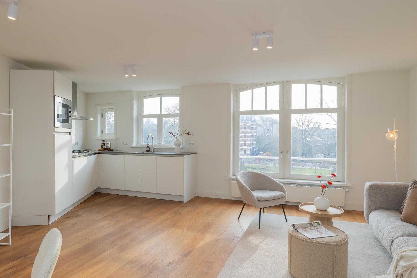 Live on one of Amsterdam's most beautiful and stately canals, enjoying unobstructed views of the monumental Muiderpoort and the Wereldmuseum Amsterdam. This is exactly what this spacious, recently split upper house has to offer. Located on private land, this beautiful apartment is part of a recently and completely divided building, in accordance with the applicable guidelines of the Municipality of Amsterdam. This means that the property meets all current requirements and offers the security that comes with a solid, future-proof investment. The entrance is on the second floor. Extending over two floors, the apartment has a well thought out layout and no fewer than four full bedrooms, a rarity in this location. Large windows at the front provide a beautiful panoramic view of Plantage Muidergracht, offering views of the historic Muiderpoort and the green, cultural surroundings of Plantagebuurt. With a usable area of approximately 80 m², the apartment is efficiently laid out with a bright living room and open-plan kitchen and a comfortable sleeping area with several bedrooms and a luxurious bathroom on the top floor. The ceiling heights and window positions contribute to a pleasant light and spacious feel. The location is truly unique, being both central and quiet. It is within walking distance of the Artis Zoo, Hortus Botanicus, Oosterdok and the city centre, and has excellent accessibility and amenities in the immediate vicinity. This characterful apartment is situated on freehold land and is legally in order. It boasts an exceptional view and a layout that suits both current and future living requirements.Video