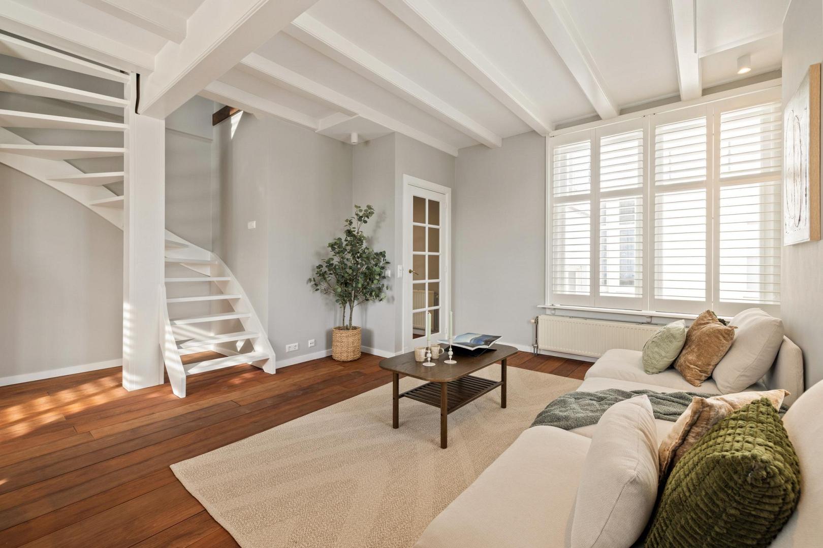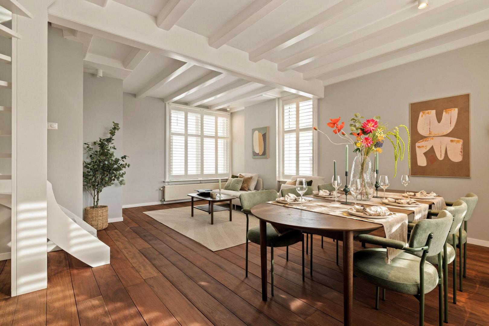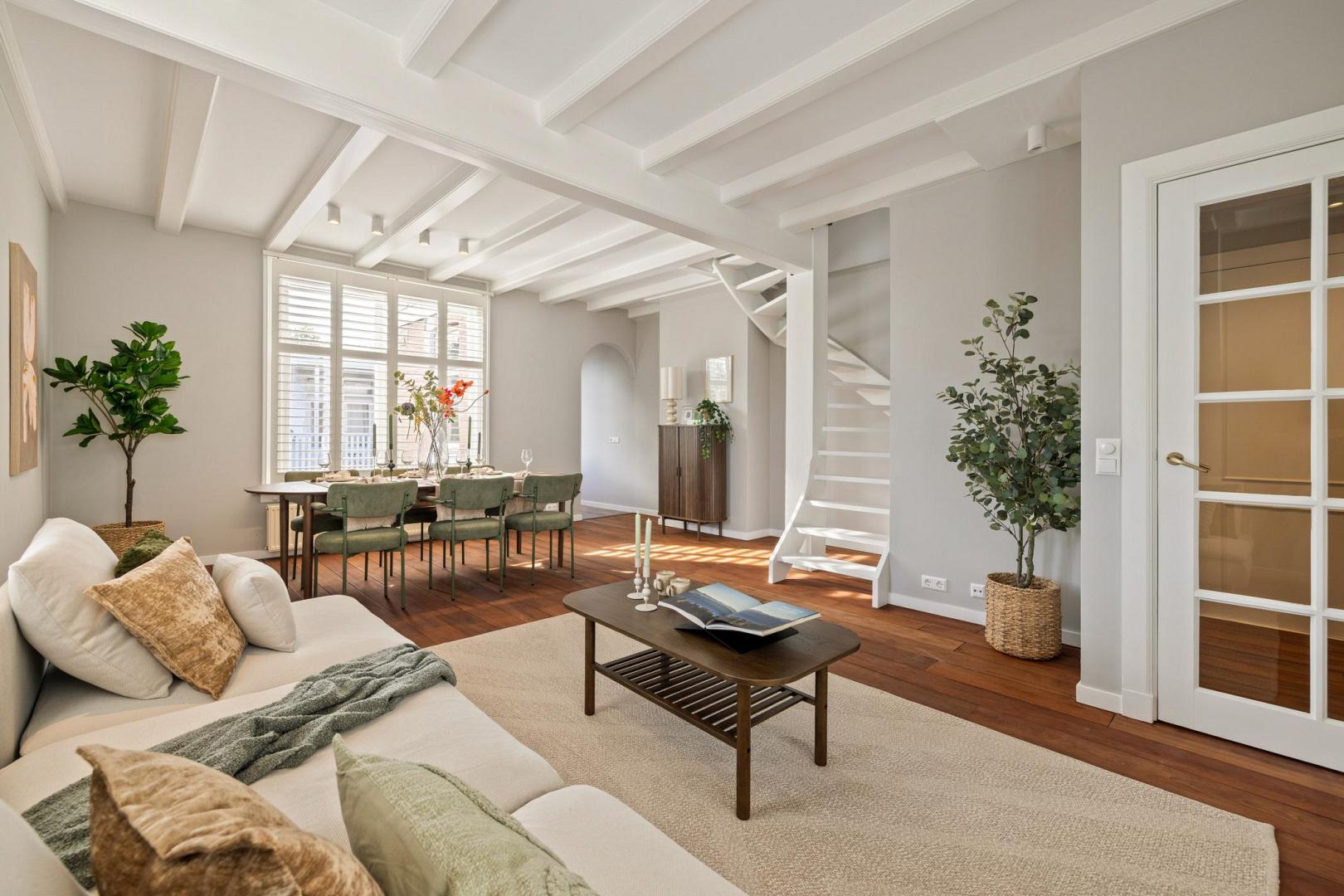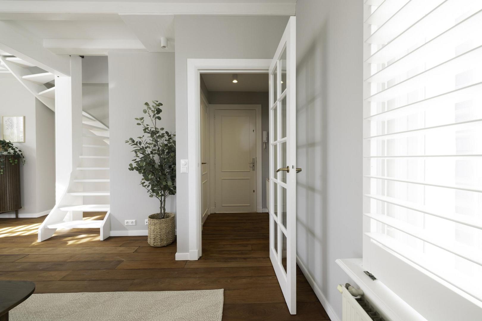 Rozenstraat 213-3 – Double Upper House with Terrace in the Heart of the Jordaan In a charming and quiet street in the middle of the Jordaan lies this fully renovated, move-in ready double upper house. Here, you combine the vibrant city life with an oasis of peace, light, and comfort. Via the well-maintained staircase you reach the entrance of the apartment. The hallway, with a wall-mounted toilet and fountain, is finished with colorful floor tiles that immediately give the home its character. The living room is a unique and bright space, thanks to windows on three sides and the exposed beam construction. The oak floor, smooth plastered walls, and atmospheric shutters create a warm and stylish ambiance. At the rear you’ll find the modern half-open kitchen (2024), finished in anthracite with a wooden worktop, handle-less drawers, and built-in appliances including a fridge-freezer, dishwasher, oven, and induction hob with extractor. The white tiled backsplash adds a classic touch. An open staircase in the living room leads to the upper floor. Here you’ll find a stunning, spacious bedroom with a high ceiling, a large dormer window, and additional daylight from the hallway. The bedroom features built-in closets and gives access to the sunny terrace. From here you enjoy a phenomenal view over the city, with the Westerkerk as an eye-catcher. Adjacent to the bedroom lies the luxurious bathroom, equipped with a walk-in shower, washbasin unit, second toilet, and black fittings that give the space a modern look. The beautiful shared roof terrace offers a delightful outdoor space in the middle of the city, a rarity in this location. The property is in excellent condition: recent paintwork, façade impregnation, and modern bathroom and kitchen ensure you can move in immediately without any renovations. Highlights: - Freehold property (no ground lease) - Active Homeowners’ Association, contribution €260.21 per month - Fully renovated and beautifully finished - Living area 72 m² - Shared roof terrace of approx. 7.6 m² with unique views - Recent exterior painting and façade impregnation - Move-in ready and immediately available Location: Rozenstraat is a peaceful street with characteristic buildings, right in the lively Jordaan. You live within walking distance of the Rozengracht, the idyllic Bloemgracht, and the charming Nine Streets. Supermarkets, specialty shops, and local stores are just around the corner, as well as schools, sports facilities, and public transport. By bike, you can reach Amsterdam Central Station within minutes. The Jordaan is renowned for its hidden courtyards, lively markets, and cozy atmosphere. On Saturdays and Mondays you can visit the famous Noordermarkt, while the Lindengracht Market is perfect for fresh produce. In short: This home combines tranquil living with the vibrancy of the Jordaan. A unique opportunity to live in one of the most beautiful areas of Amsterdam!Video