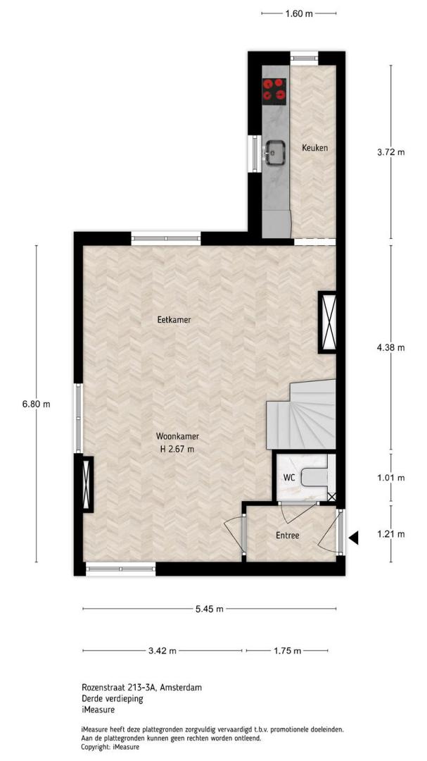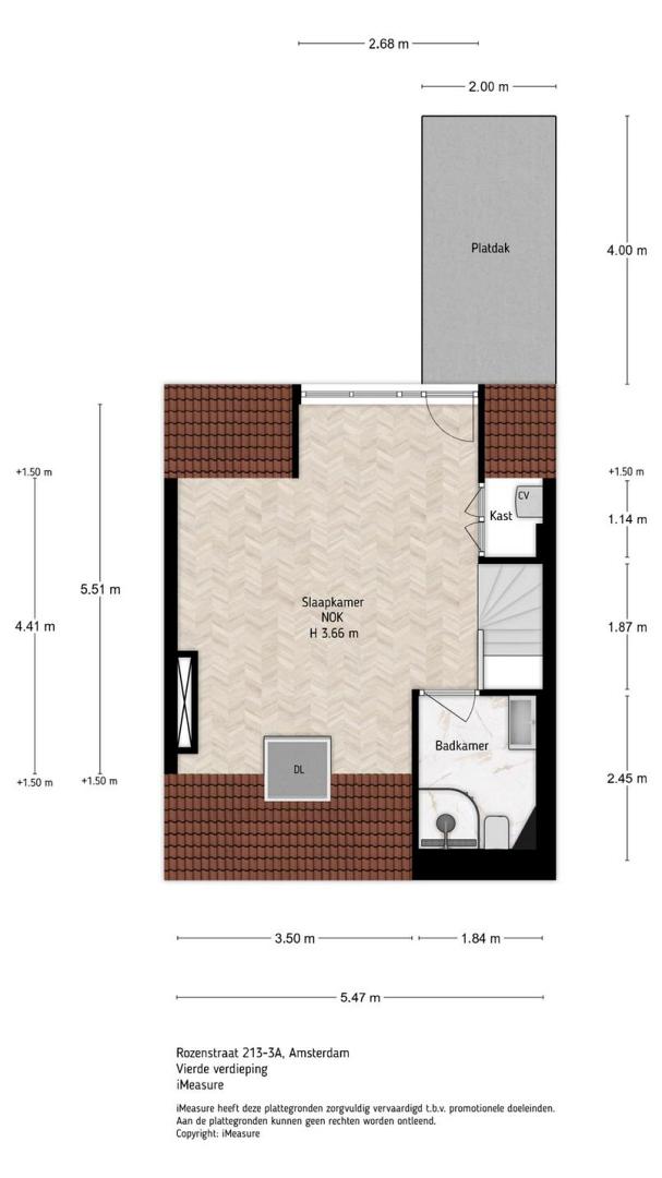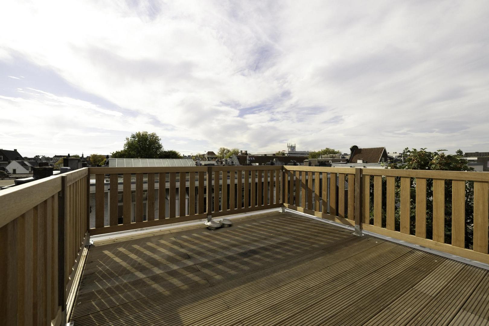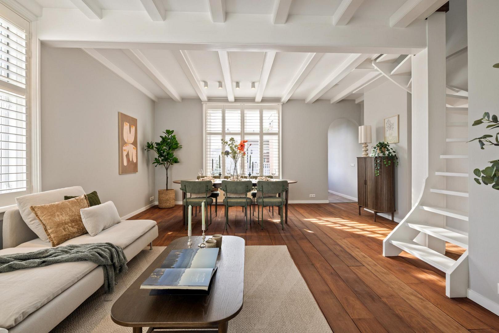 Rozenstraat 213-3 – Double Upper House with Terrace in the Heart of the Jordaan In a charming and quiet street in the middle of the Jordaan lies this fully renovated, move-in ready double upper house. Here, you combine the vibrant city life with an oasis of peace, light, and comfort. Via the well-maintained staircase you reach the entrance of the apartment. The hallway, with a wall-mounted toilet and fountain, is finished with colorful floor tiles that immediately give the home its character. The living room is a unique and bright space, thanks to windows on three sides and the exposed beam construction. The oak floor, smooth plastered walls, and atmospheric shutters create a warm and stylish ambiance. At the rear you’ll find the modern half-open kitchen (2024), finished in anthracite with a wooden worktop, handle-less drawers, and built-in appliances including a fridge-freezer, dishwasher, oven, and induction hob with extractor. The white tiled backsplash adds a classic touch. An open staircase in the living room leads to the upper floor. Here you’ll find a stunning, spacious bedroom with a high ceiling, a large dormer window, and additional daylight from the hallway. The bedroom features built-in closets and gives access to the sunny terrace. From here you enjoy a phenomenal view over the city, with the Westerkerk as an eye-catcher. Adjacent to the bedroom lies the luxurious bathroom, equipped with a walk-in shower, washbasin unit, second toilet, and black fittings that give the space a modern look. The beautiful shared roof terrace offers a delightful outdoor space in the middle of the city, a rarity in this location. The property is in excellent condition: recent paintwork, façade impregnation, and modern bathroom and kitchen ensure you can move in immediately without any renovations. Highlights: - Freehold property (no ground lease) - Active Homeowners’ Association, contribution €260.21 per month - Fully renovated and beautifully finished - Living area 72 m² - Shared roof terrace of approx. 7.6 m² with unique views - Recent exterior painting and façade impregnation - Move-in ready and immediately available Location: Rozenstraat is a peaceful street with characteristic buildings, right in the lively Jordaan. You live within walking distance of the Rozengracht, the idyllic Bloemgracht, and the charming Nine Streets. Supermarkets, specialty shops, and local stores are just around the corner, as well as schools, sports facilities, and public transport. By bike, you can reach Amsterdam Central Station within minutes. The Jordaan is renowned for its hidden courtyards, lively markets, and cozy atmosphere. On Saturdays and Mondays you can visit the famous Noordermarkt, while the Lindengracht Market is perfect for fresh produce. In short: This home combines tranquil living with the vibrancy of the Jordaan. A unique opportunity to live in one of the most beautiful areas of Amsterdam!Video